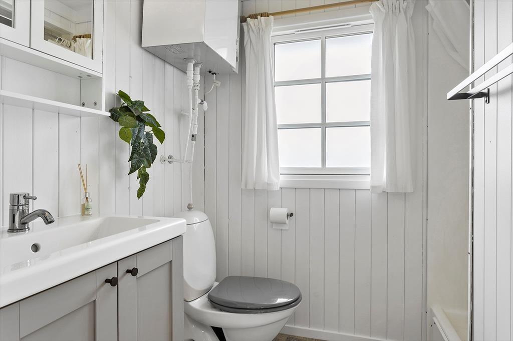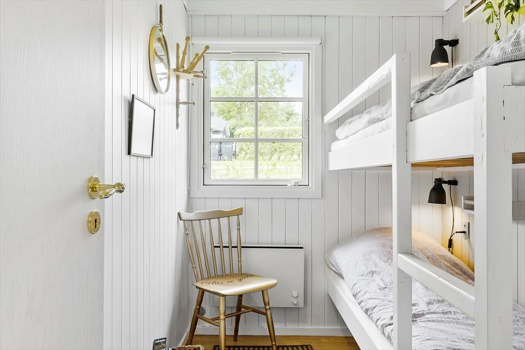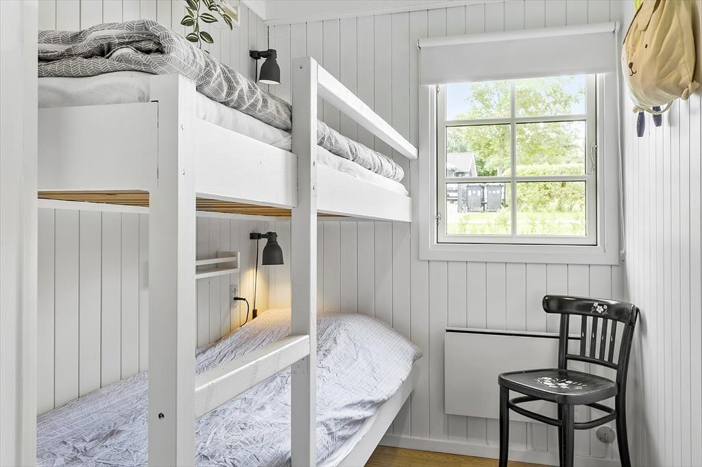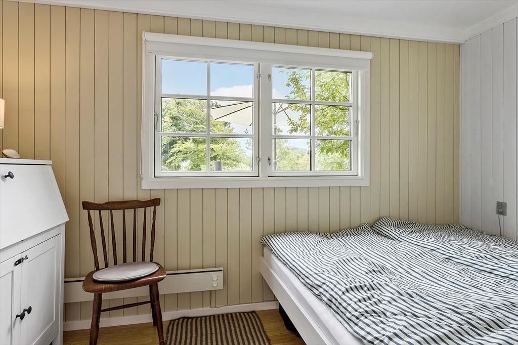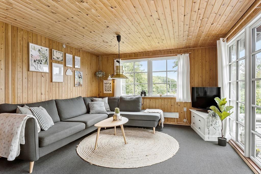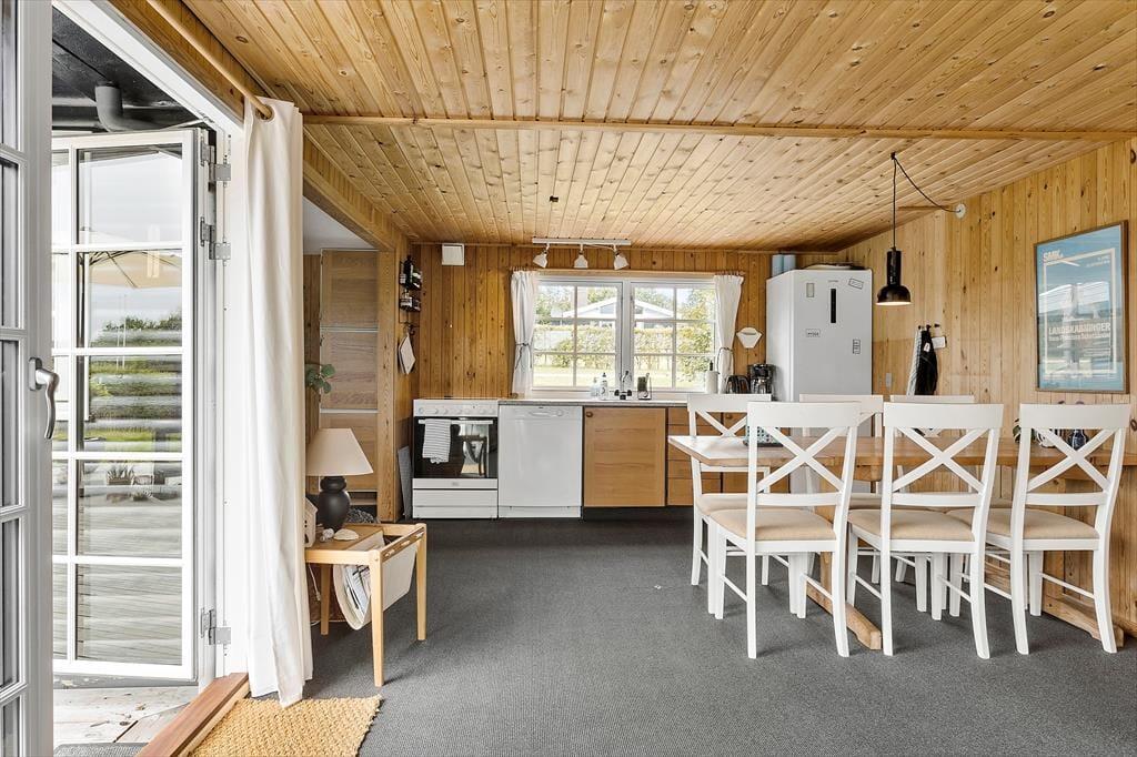 Sommerhuset fremstår klassisk med sin sorte træfacade og hvide vinduesrammer på den grønne naturgrund. Indenfor emmer rummene af original feriestemning, men med opdateret møblement og moderne faciliteter som opvaskemaskine i køkkenet, god wi-fi-forbindelse og fladskærms-tv med Chromecast. Stue og køkken er i åben forbindelse, så du nemt kan smutte ud og tjekke lasagnen i ovnen, mens du spiller brætspil med familien ved spisebordet eller slapper af i den komfortable sofa. Planløsningen rummer desuden et pænt brusebadeværelse og tre gode soveværelser, der tilbyder sengepladser til fire voksne og to børn.