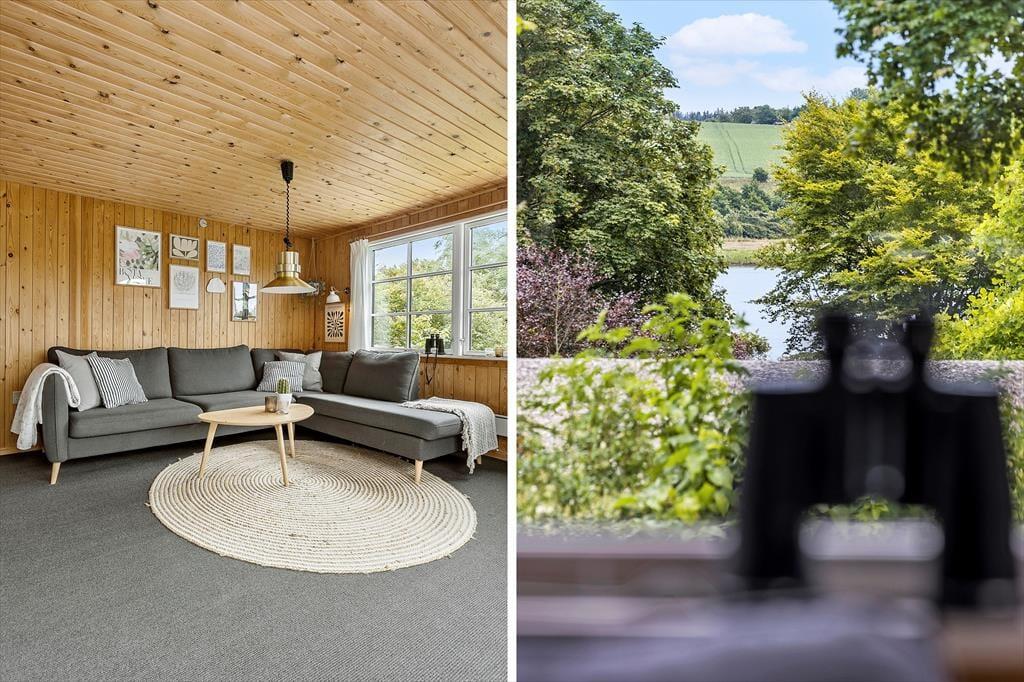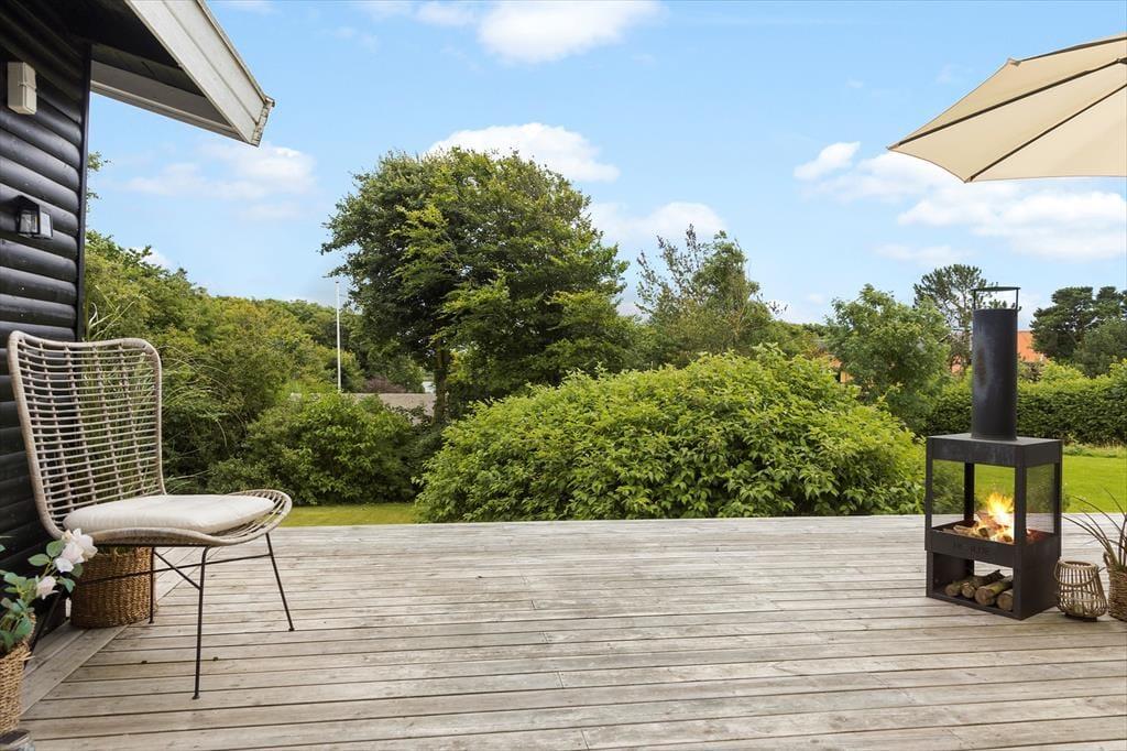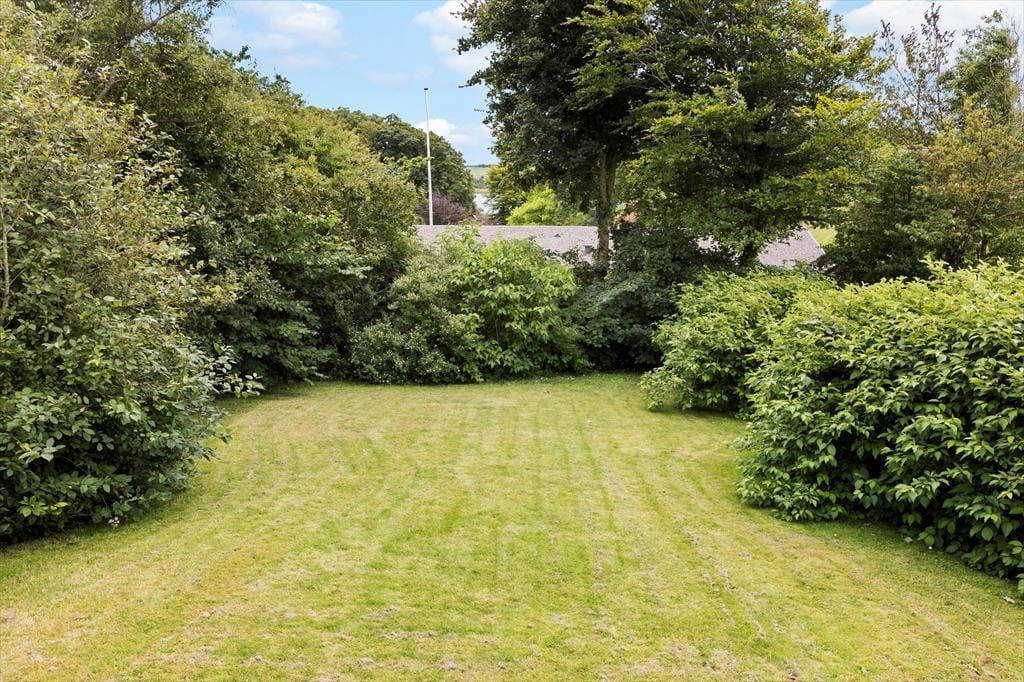 Som vejnavnet afslører, ligger sommerhuset i Doveroddes bakkede landskab, hvilket betyder, at grunden skråner en smule, mens den sydvendte træterrasse er helt plan og hævet over græsplænen. Randbeplantningen sørger for, at udearealerne er ugenerede, men der er tilpas åbent mellem trætoppene, så du kan nyde udsigten til Limfjordens blå vand. De komfortable havemøbler, grillen og parasollen sætter perfekt scenen for udelivet, og alt ånder fred og idyl, når du lukker øjnene og lytter til fuglesangen i en god havestol. Kort sagt er der virkelig lagt op til, at du kan få præcis den form for tilbagelænet feriehygge, du drømmer om i de naturskønne og rolige omgivelser.