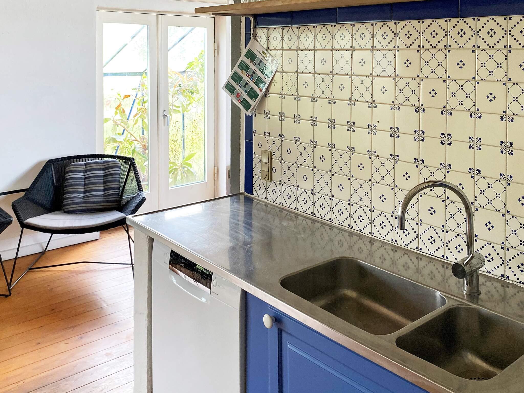 Fra opholdsrummet og køkkenet er der udgang til orangeri med forskellige planter på bygningens sydside. I entreen er vaskemaskine og ekstra bordplads i forbindelse med dette.