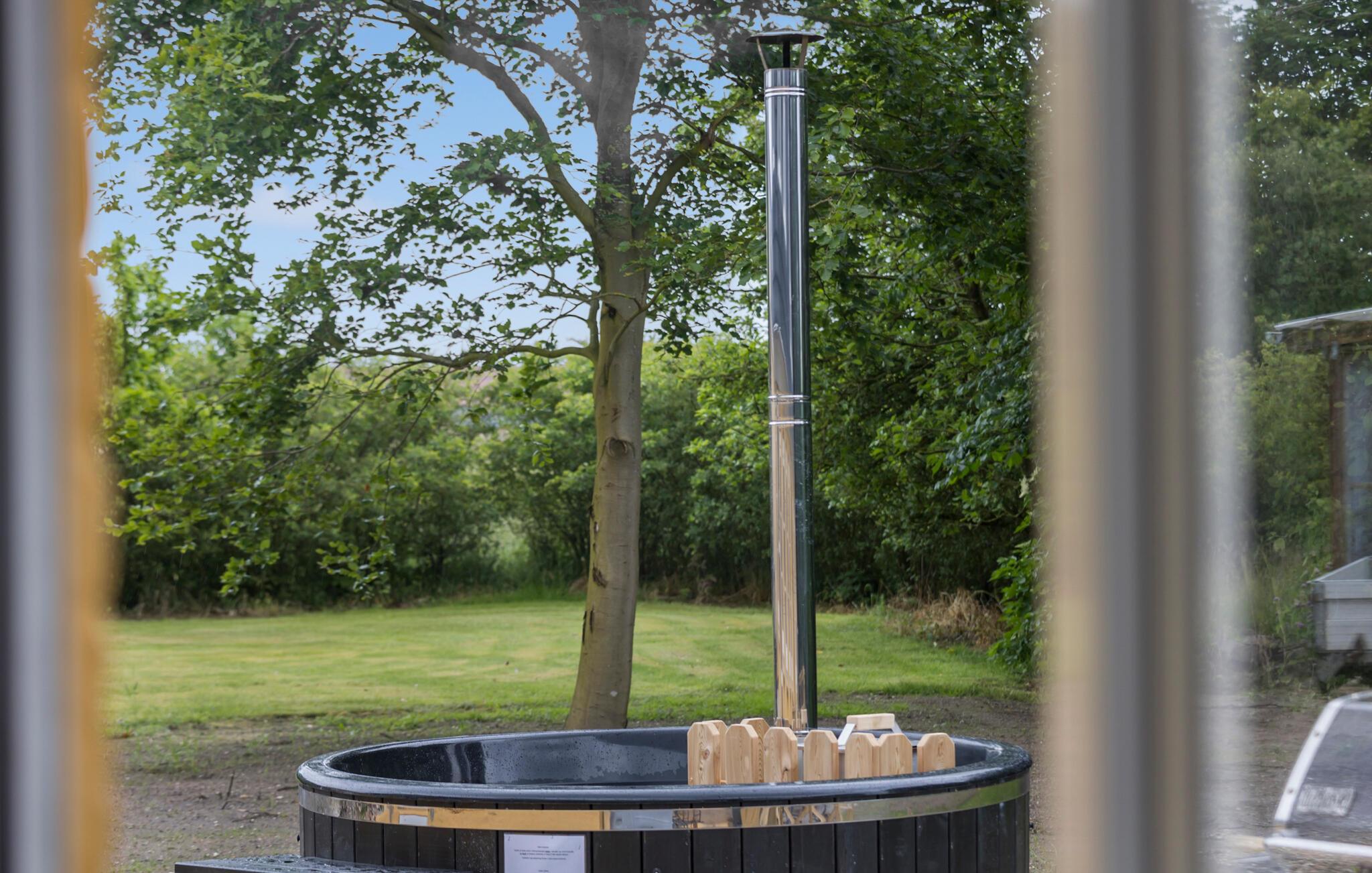 Sommerdagene kan I nyde på den smukke træterrasse. Drik en kop kaffe her, grill om eftermiddagen eller slap af i vildmarksbadet.