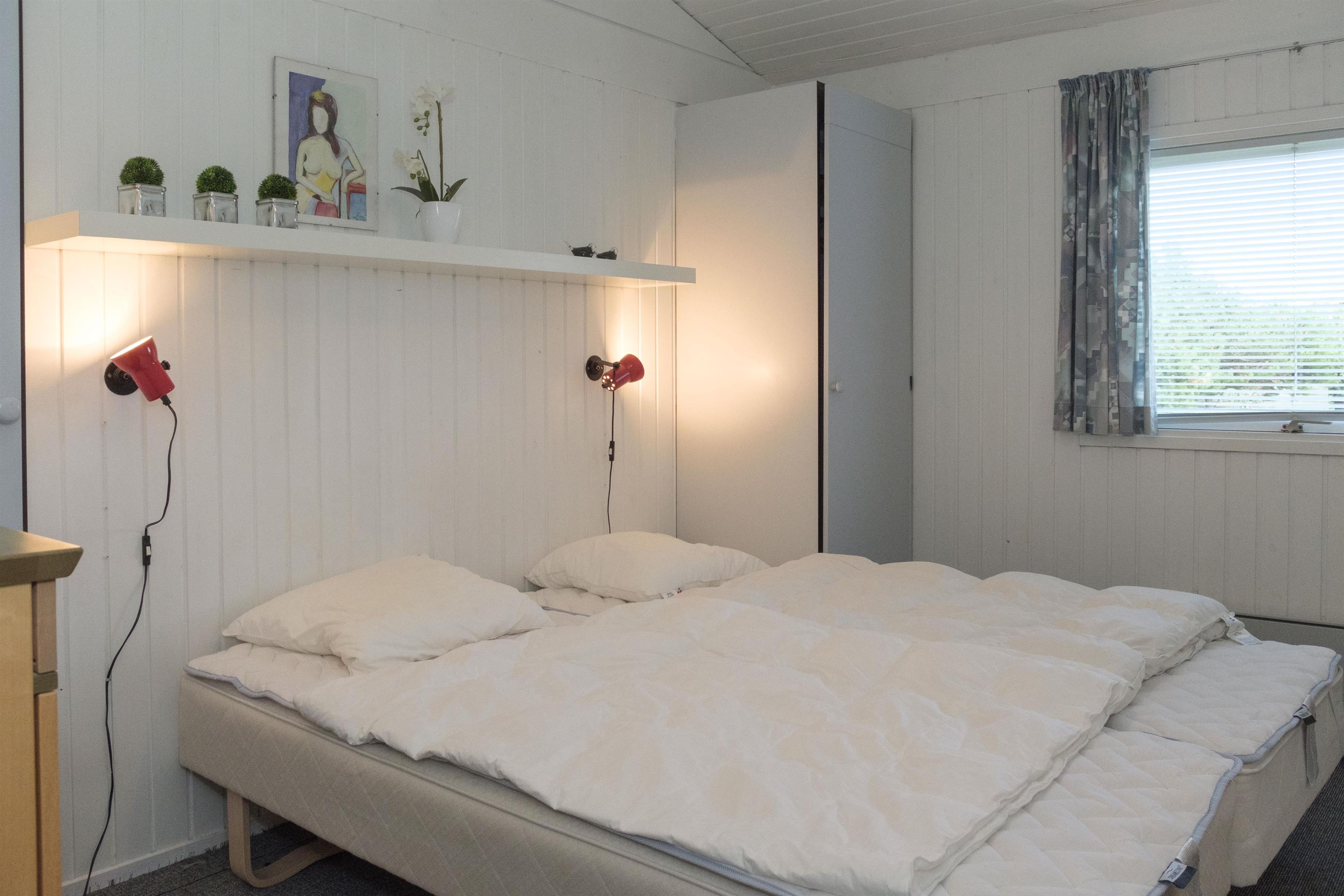 Ældre og velholdt sommerhus beliggende i rolige omgivelser tæt på god og børnevenlig strand. Husejeren tager meget hånd om sit hus, og derfor fremstår huset meget velholdt og med sans for detaljer. Dejlig terrasse med havemøbler og grill samt havkig og god, rummelig udestue med udgang til terrassen. Hyggelig opholdsstue med TV med parabol, stereoanlæg med CD og radio. Dejligt køkken med keramisk komfur, opvaskemaskine, mikrobølgeovn samt køleskab med lille separat fryser. Nyt badeværelse med bruseniche. Husets sovepladser fordeler sig på 3 soverum: 1 med sovesofa, 1 med enkeltseng og 1 med dobbeltseng.