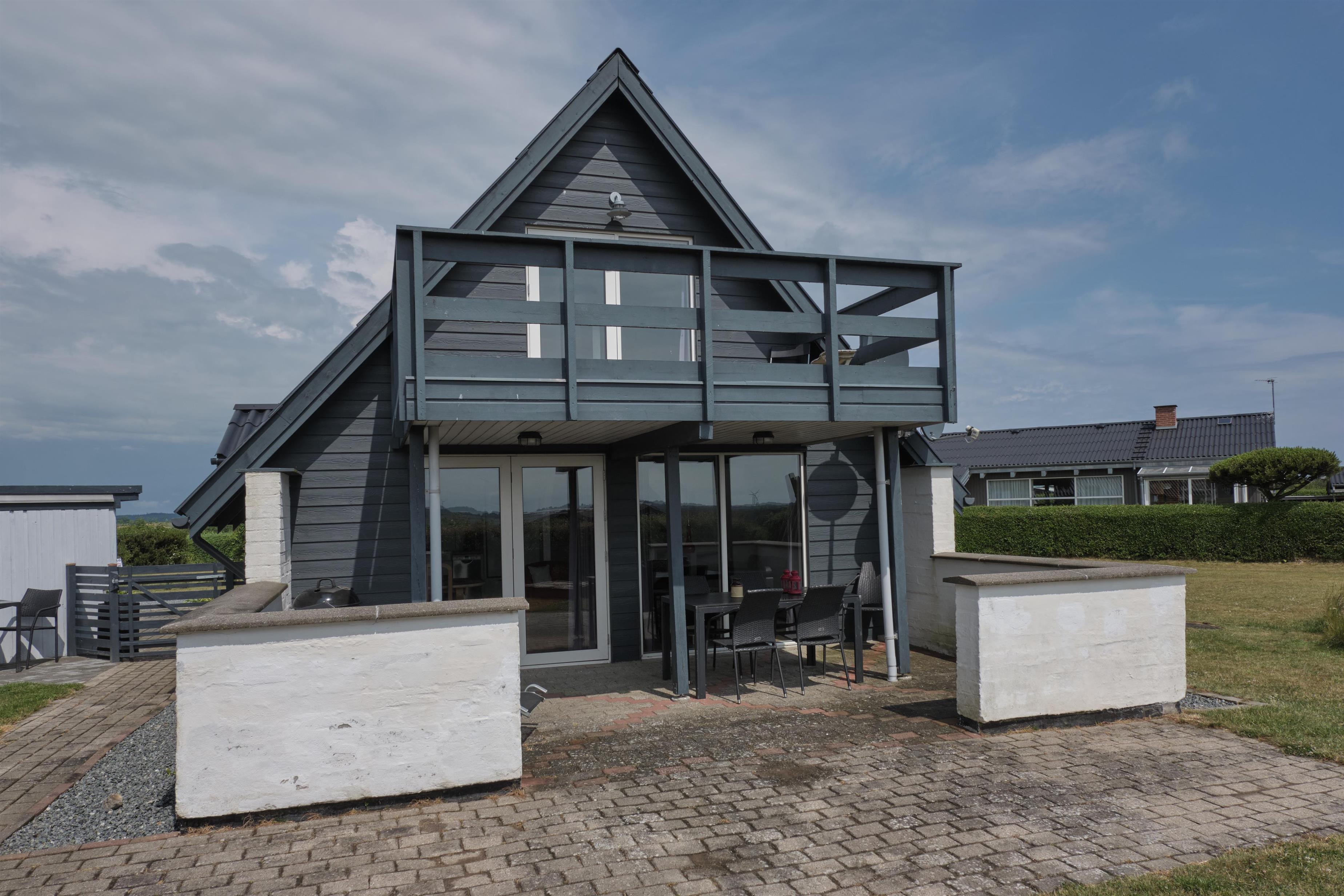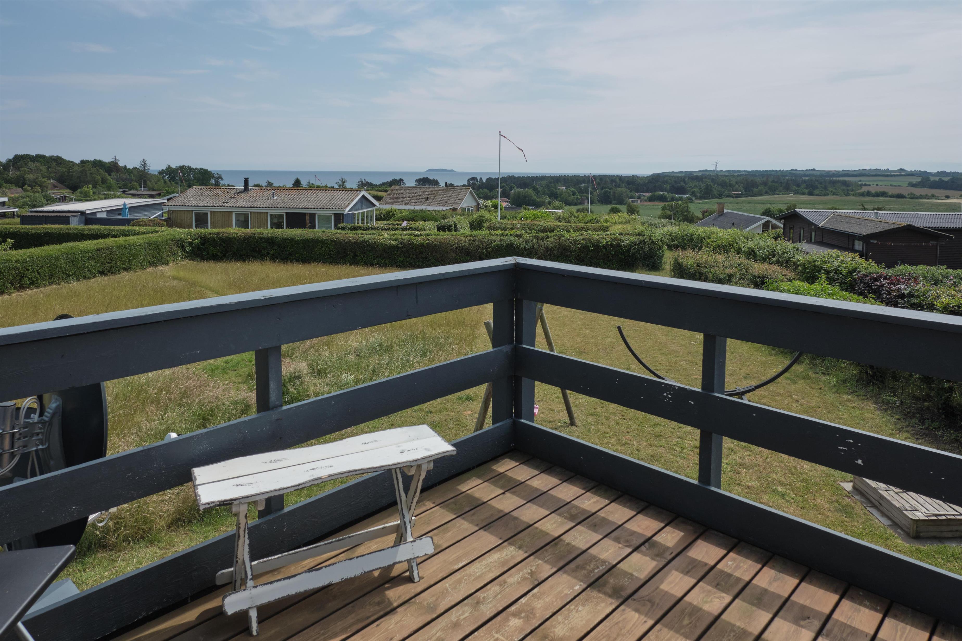 På en delvis lukket naturgrund med en skøn udsigt over Kattegat, Hjelm og Boeslum ligger dette dejlige ældre velholdte sommerhus i 2 etager med delvis overdækket terrasse med havemøbler og grill samt balkon på 1. sal. Hyggelig opholdsstue med TV, samt radio. Dejligt funktionelt køkken med keramisk komfur, køleskab med lille fryser, mikrobølgeovn og opvaskemaskine. Godt badeværelse med brusekabine, gulvvarme og sauna samt vaskemaskine og tørretumbler. Husets sovepladser fordeler sig på 4 værelser: 3 med dobbeltseng og 1 med enkeltsenge.