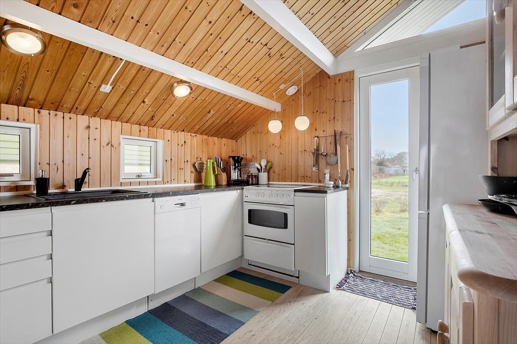 Feriehuset indeholder kombineret køkken og opholdsstue. Køkken med keramisk komfur, opvaskemaskine og køleskab med fryser. Skøn, lys opholdsstue med loft til kip og hvide loftbjælker, brændeovn, god spiseplads, sofa og lænestole, TV med Waoo Flex TV-pakke og Chromecast. (adgang til streamingtjenester kræver eget login) Badeværelse med flisegulv, bruseniche og vaskemaskine. To soveværelser, et med dobbeltseng, et med to enkeltsenge. Anneks med 2 enkeltsenge (OBS er kun brugbart i perioden 1/5 til 30/9). Desuden er der en dobbelt sovesofa i opholdsstuen.