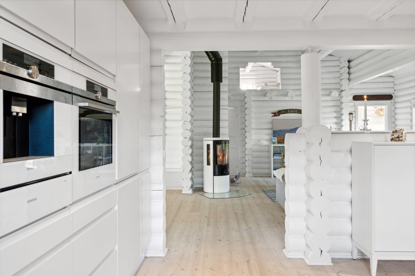 Køkkenet er udstyret med 1 køleskab. Der er 4 induktionskogeplader, varmluftovn samt opvaskemaskine.
