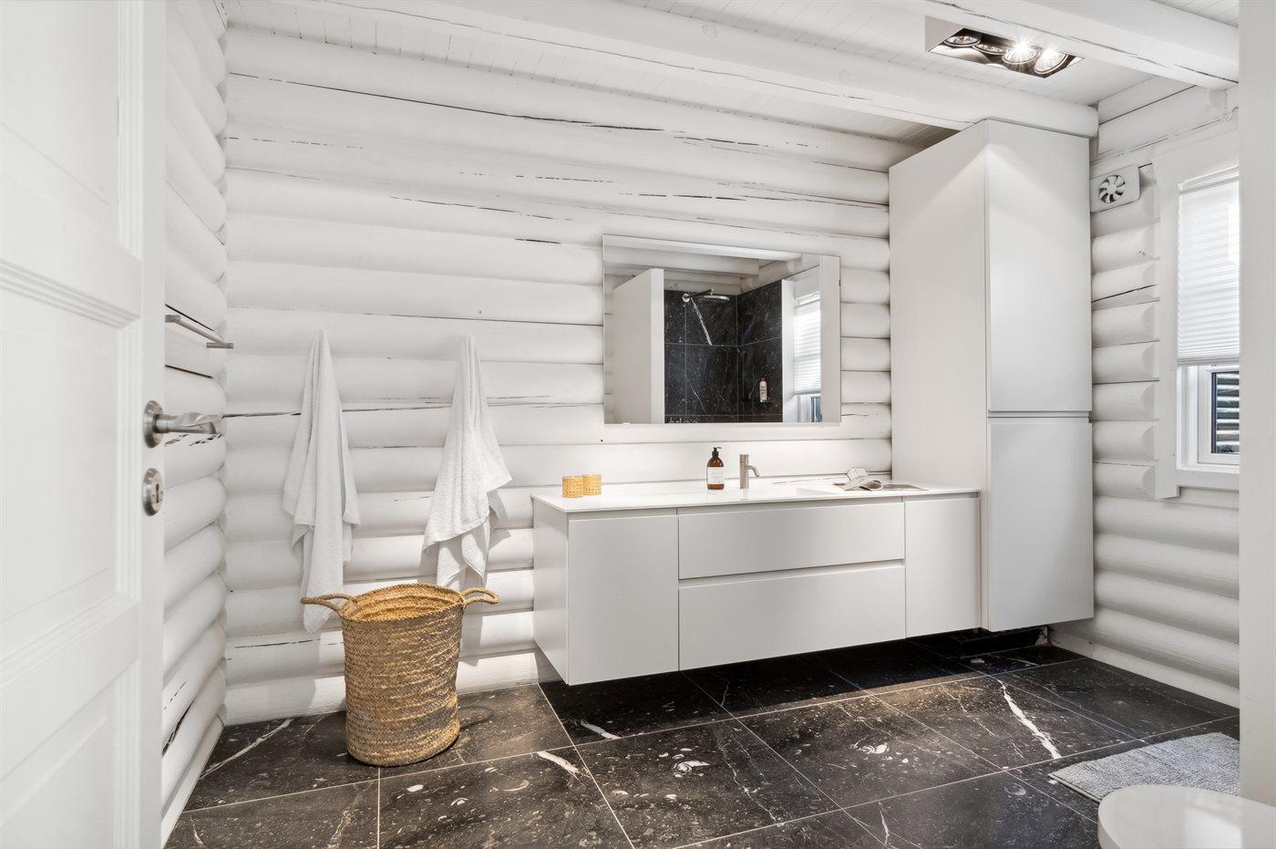 Der er 2 badeværelser med bruseniche og 2 toiletter, heraf 1 gæstetoilet. Der er gulvvarme på 2 badeværelser.