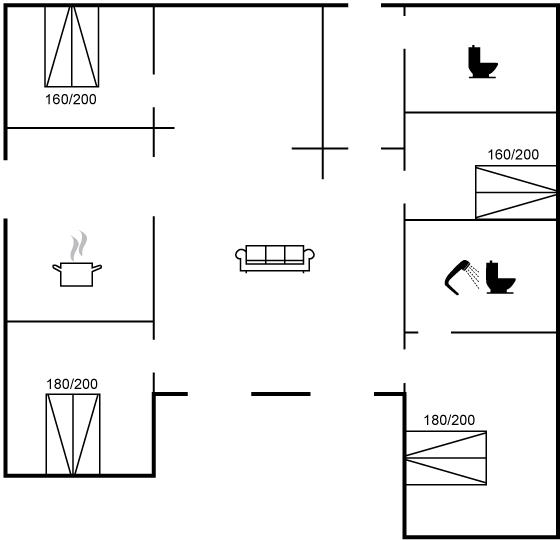 Der er i alt 4 soveværelser. Sovepladserne fordeler sig på: 8 sovepladser i dobbeltsenge.