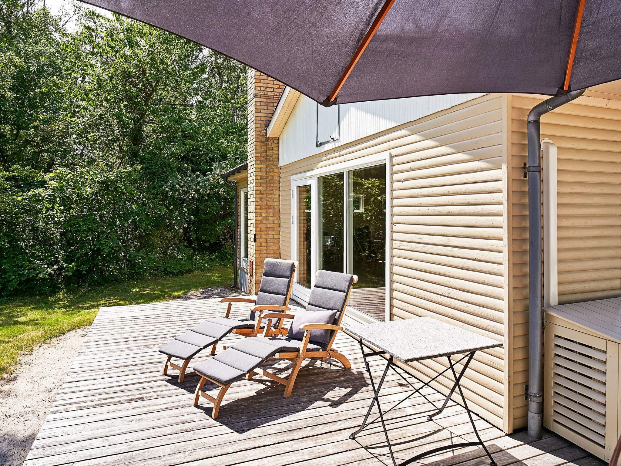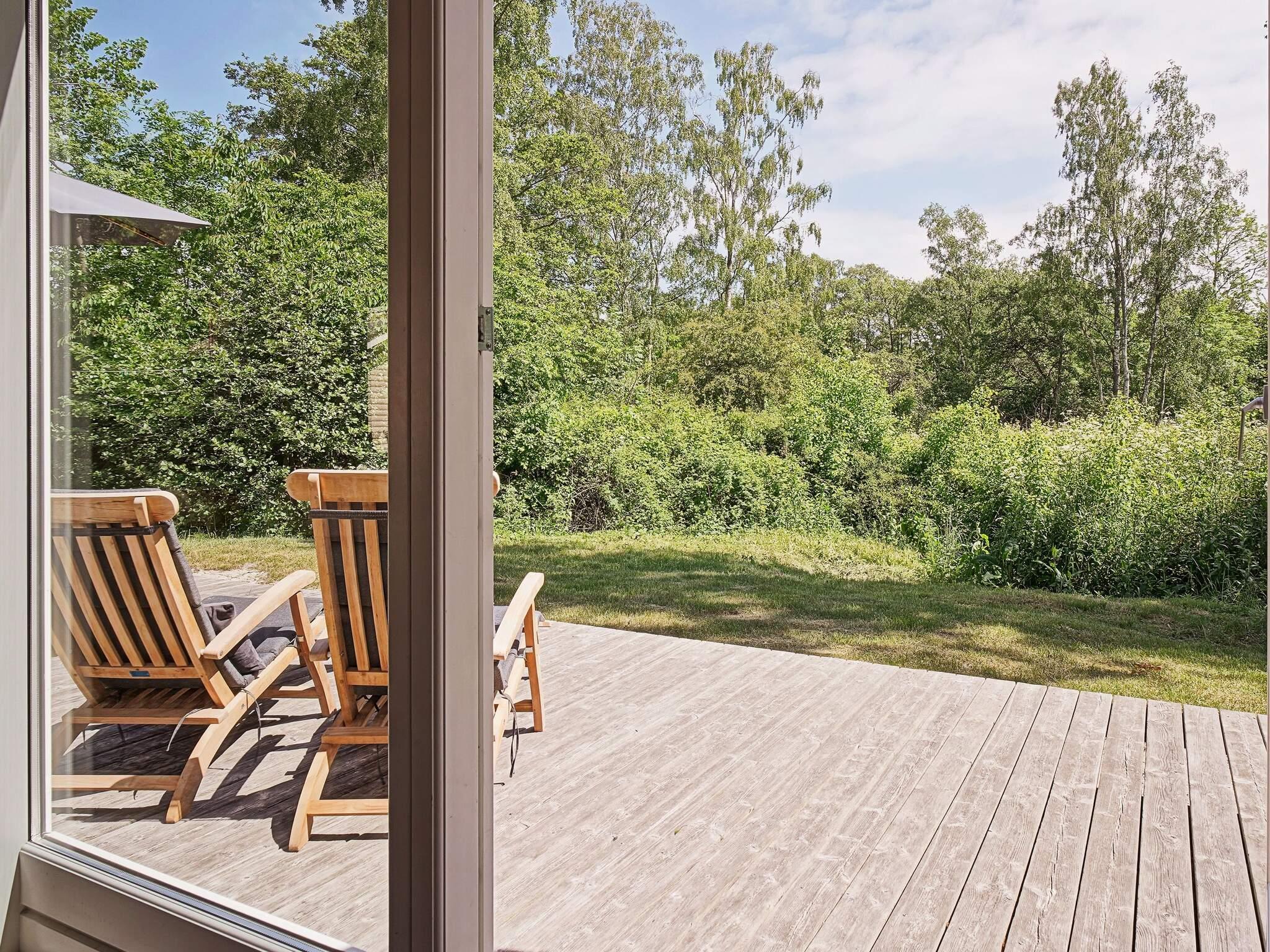 Udenfor er der en stor terrasse, der omkranser tre sider af huset, hvilket giver en dejlig udsigt over det omkringliggende grønt og naturlandskab. Den rummelige grund indeholder en sandkasse og masser af plads til børn at lege, mens de nærliggende skov- og cykelstier gør det nemt at nyde lange gå- eller cykelture. Kun 400 meter fra vandet er beliggenheden ideel til familiedage på stranden eller udforske de naturlige omgivelser.