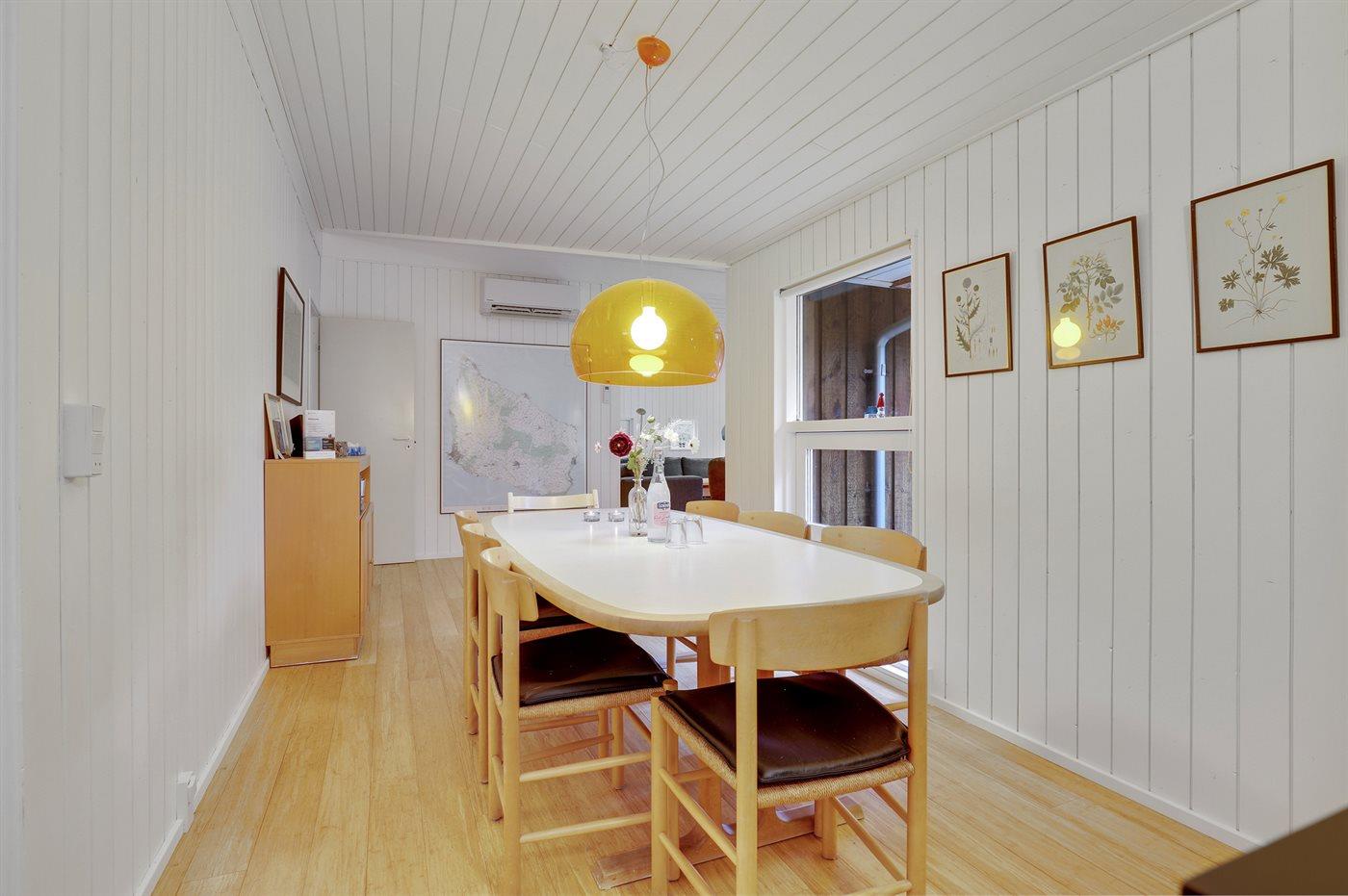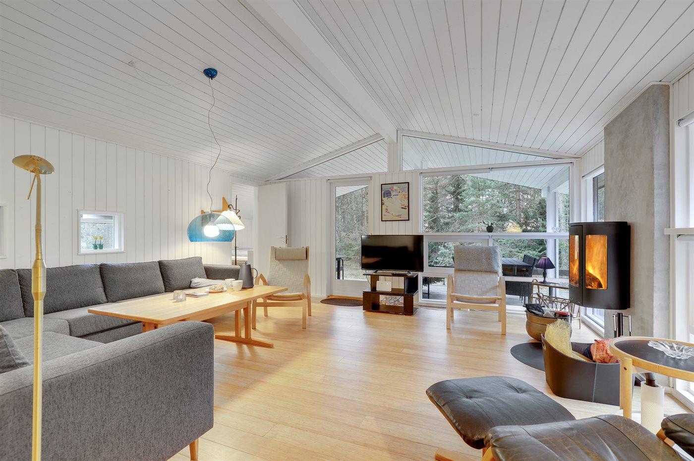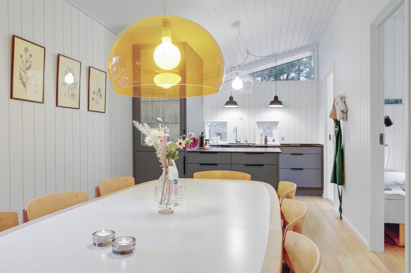 Huset er i 2022 blevet moderniseret og fremstår i dag som et virkelig fristende feriested med stor stue, nyt køkken og lyse vægge, lofter og nye gulvbelægninger. Den installerede varmepumpe giver gode muligheder for at nyde ferien – også i de lidt køligere perioder.