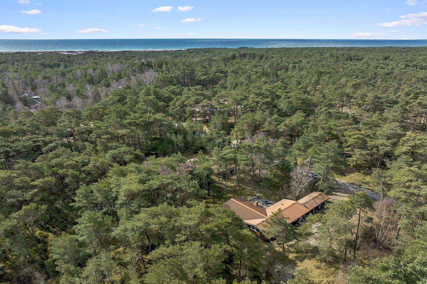 Dette kvalitetsferiehus ligger på let kuperet naturgrund midt i et af Bornholms fineste sommerhusområder ganske nær den centrale del af Dueodde med restauranter, små butikker og adgang til de imponerende klitområder og ud til sandstranden.