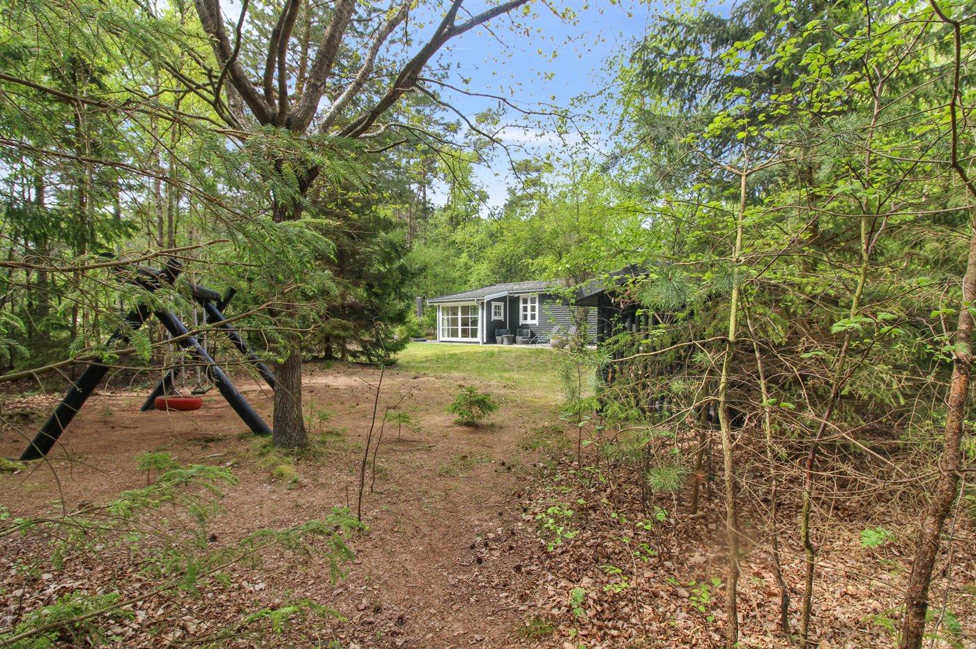 Ferieboligen er beliggende på en 2689 m² stor naturgrund. Der er 800 m til havet. Nærmeste forretning er beliggende i en afstand af 500 m. Til ferieboligen hører 45 m² terrasseareal. Gynge. Der er installeret stik til opladning af elbil. Type 2 stik. Med 3,7 - 22 kW ladeeffekt. Parkering ved ferieboligen.