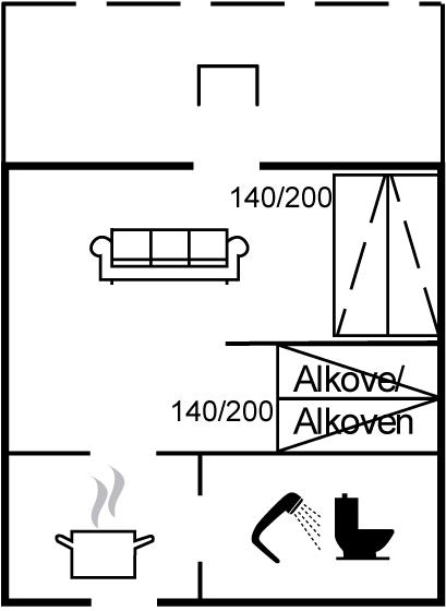 Sovepladserne fordeler sig på:2 sovepladser i dobbeltseng. 2 sovepladser i sovesofa (dobbelt).