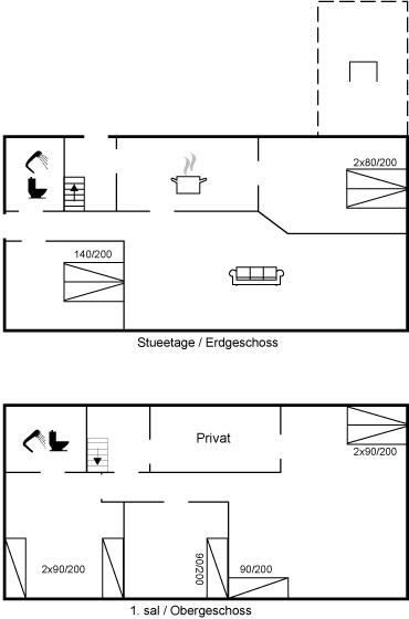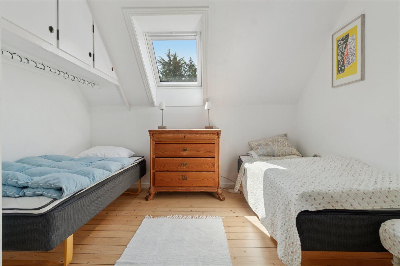 Der er i alt 5 soveværelser. Sovepladserne fordeler sig på: 6 sovepladser i dobbeltsenge. 4 sovepladser i enkeltsenge.