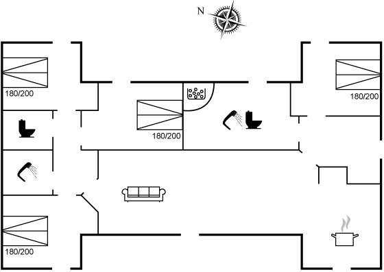 Der er i alt 4 soveværelser. Sovepladserne fordeler sig på: 8 sovepladser i dobbeltsenge. Derudover er der 1 stk. barneseng.