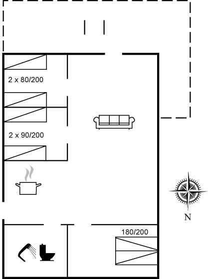 Der er i alt 3 soveværelser. Sovepladserne fordeler sig på: 2 sovepladser i dobbeltseng. 3 sovepladser i enkeltsenge.