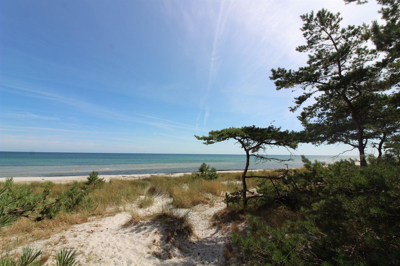 300 meter fra Dueoddes aktive centrum finder man dette blåmalede hus, som er omgivet af store træterrasser. Huset er beliggende ugenert på en meget stor og flot naturgrund med blandet fyrre- og birketræsbevoksning - sammen med to nabohuse.