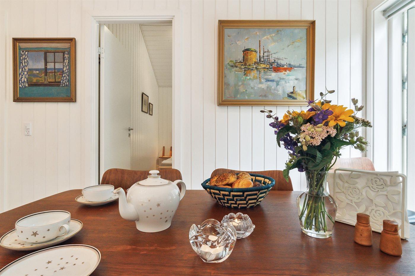 Godt design og god smag kendetegner dette velindrettede feriehus i udsøgt kvalitet med en nøje afstemt moderne skandinavisk møblering. Sommerhuset ligger på en stor åben fyrretræsbevokset naturgrund - tæt på restaurant, iskiosk og burgerbar. I højsæsonen er der også et udsalg med daglige fornødenheder ved Dueodde Vandrerhjem, der desuden tilbyder adgang til en lille, men populær svømmehal. I nærheden er der en 18 hullers golfbane.