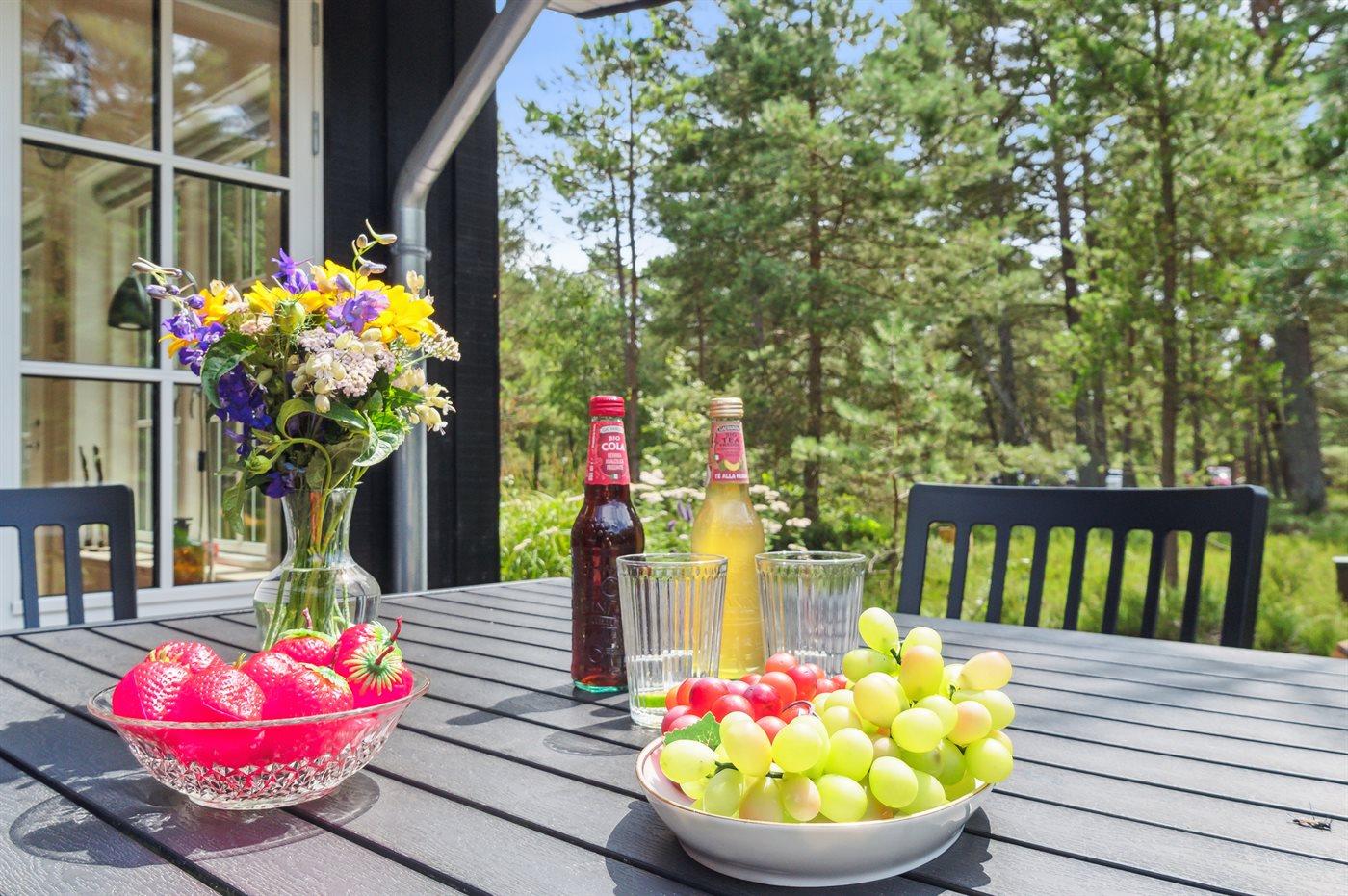 Sommerhuset egner sig til 4 personer. Ferieboligen er på 70 m² og bygget i 2022. Ferieboligen er beliggende på en 4000 m² stor naturgrund. På terrasserne omkring huset kan I nyde udelivet fra morgen til aften med havemøbler både mod øst og vest. Grill til rådighed.
