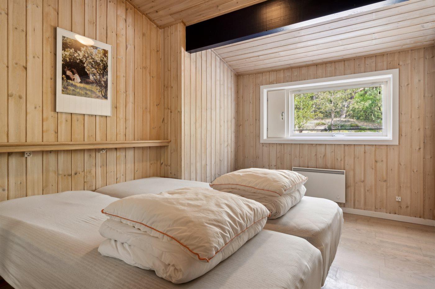 Der er i alt 4 soveværelser. Sovepladserne fordeler sig på: 6 sovepladser i dobbeltsenge. 2 sovepladser i enkeltsenge.
