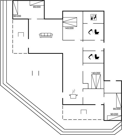 Der er i alt 4 soveværelser. Sovepladserne fordeler sig på: 4 sovepladser i dobbeltsenge. 4 sovepladser i enkeltsenge.
