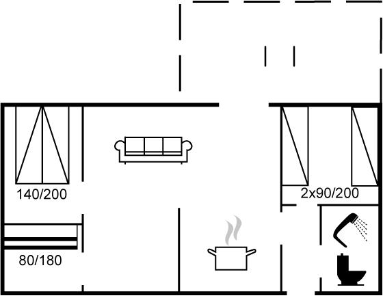 Der er i alt 3 soveværelser. Sovepladserne fordeler sig på: 2 sovepladser i dobbeltseng. 2 sovepladser i enkeltsenge. 2 sovepladser i køjeseng. Derudover er der 1 stk. barneseng.