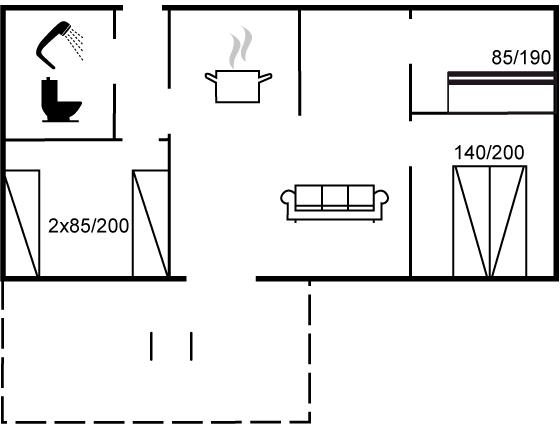 Der er i alt 3 soveværelser. Sovepladserne fordeler sig på: 2 sovepladser i dobbeltseng. 2 sovepladser i enkeltsenge. 2 sovepladser i køjeseng.