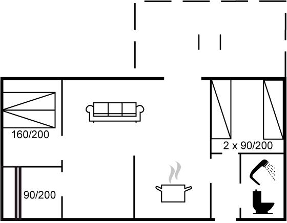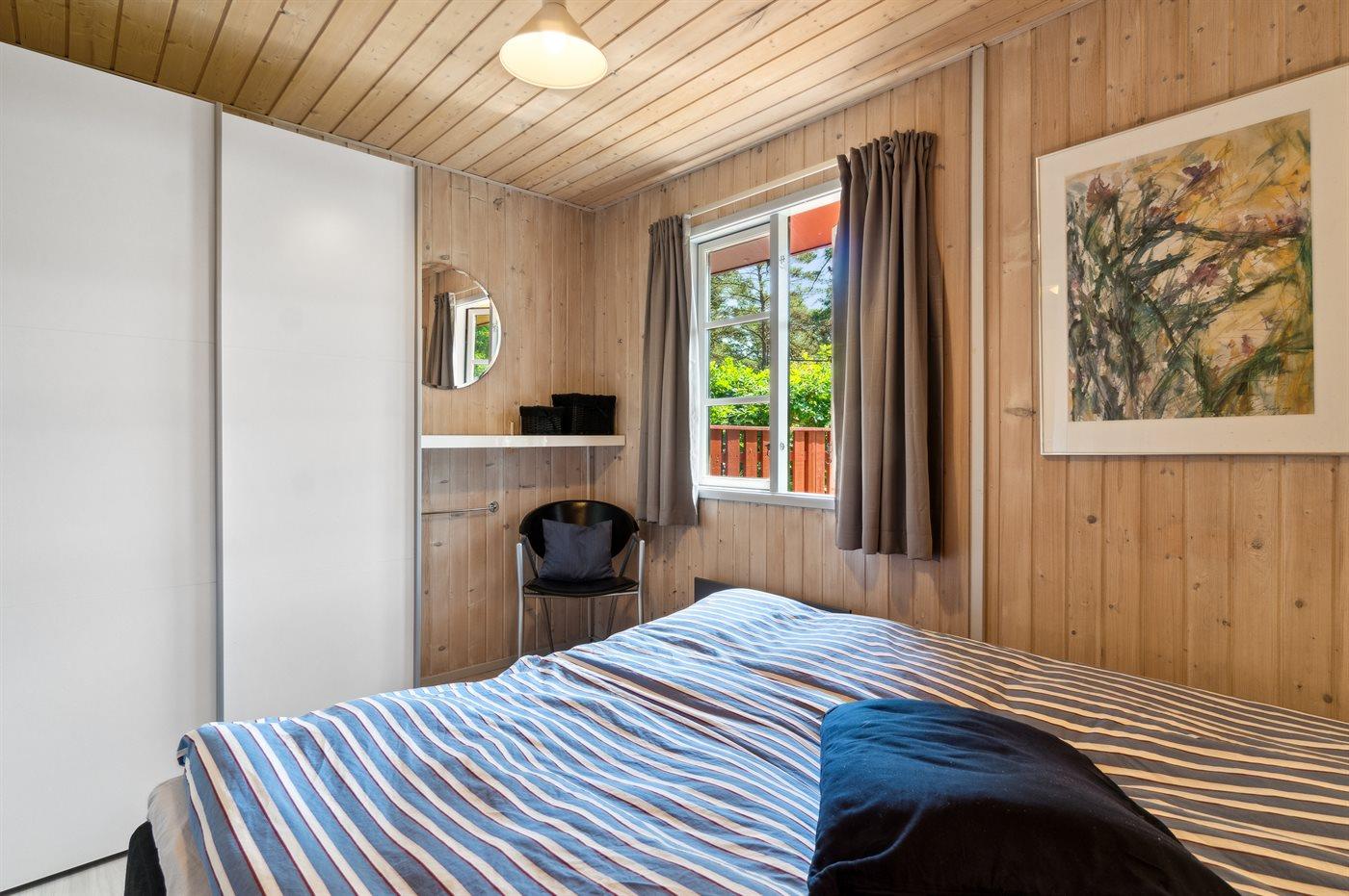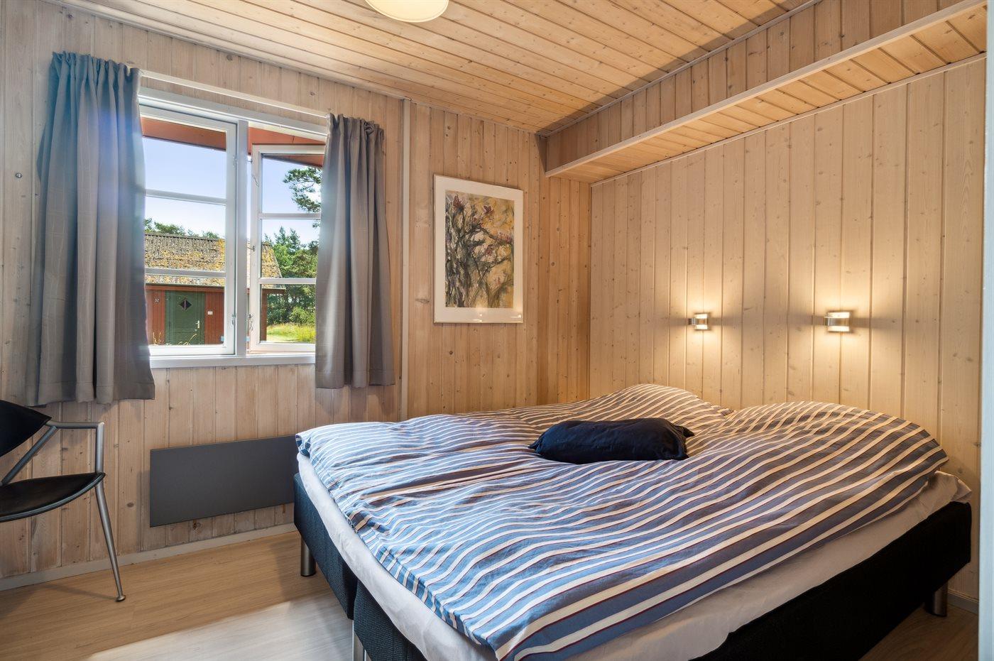 Der er i alt 3 soveværelser. Sovepladserne fordeler sig på: 2 sovepladser i dobbeltseng. 2 sovepladser i enkeltsenge. 2 sovepladser i køjeseng.