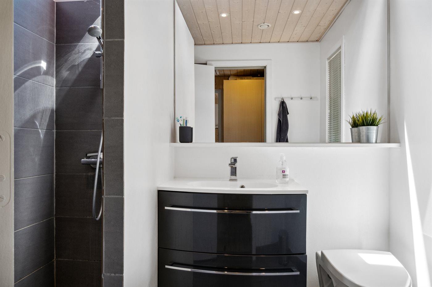 Der er 1 badeværelse med bruseniche og 1 toilet.. Der er gulvvarme på 1 badeværelse.
