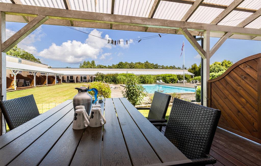 Dueodde Feriepark er grøn og omkranset af skov, så I kommer til at bo i en naturskøn, lille oase, hvor I kan slappe af mellem jeres oplevelser i området. I kommer ikke til at kede jer, for der er også en lang række aktiviteter at vælge mellem. Alt afhængig af vejret kan I begynde dagen med en dukkert i indendørs- eller udendørspoolen. Det kan også være, at I foretrækker et besøg i fitnesslokalet, og senere får I måske lyst til at tage en dyst over et spil bordtennis, tennis eller petanque. Børnene har adgang til en legeplads, og efter en frisk dukkert kan I få varmen i saunaen.