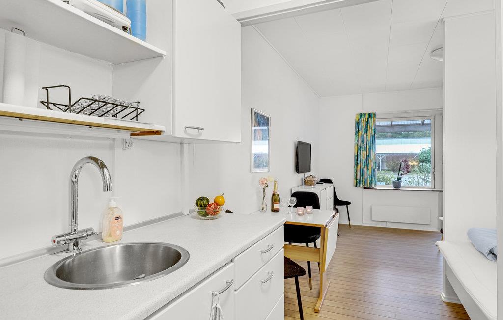 Opholdsstue/køkken - 2 Sovepladser. (Dobbeltseng(e)). 2 Sovepladser. (Sofa, madras eller lignende).