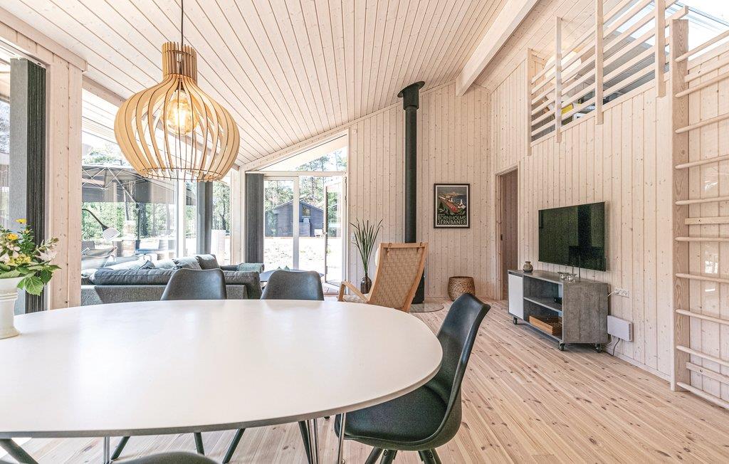 Nyopført og moderne indrettet kvalitetssommerhus beliggende på en stor og fredelig naturgrund i det populære sommerhusområde, Dueodde, nær een af Danmarks flotteste badestrande. Dette skønne sommerhus fremtræder overalt lyst og indbydende og byder på et nydeligt åbent køkken med barstole, ekstra bred bordplade og alt i moderne hvidevarer, der gør det nemt og hyggeligt at tilberede feriens mange måltider. Flot kombineret spise- og opholdstue med nydelig møblering og højt til loftet, lækkert fladskærms-tv og skønt lysindfald fra de store vinduespartier. Her er gratis internet / fibernet, varmepumpe og aircondition, og god plads til afslapning og hygge. Huset byder også på 3 dejlige soveværelser samt en hems til børnene. Flot og rummeligt badeværelse med gulvvarme og vaskesøjle. Indefra dette lækre og indbydende kvalitetssommerhus har I en dejlig udsigt til den smukke bornholmske natur, og man fornemmer virkelig at sommerhuset ligger midt ude i naturen. Fra stue og køkken har I direkte udgang til husets store og flotte træterrasse, hvor ferien virkelig kan nydes i de komfortable havemøbler og maden kan I nemt tilberede i udekøkkenet med et koldt glas vin på bordet. Har I været ude at løbe eller cykle i området, er husets udendørs bruser en skøn outdoor-facilitet, og nærheden til den smukke natur er vidunderlig. Ankommer I til huset i en el-bil, så er det dejlig nemt, da huset tilbyder ladestation til el-biler