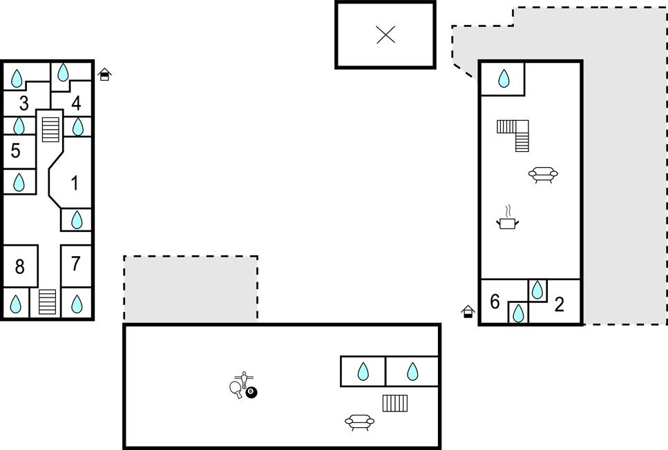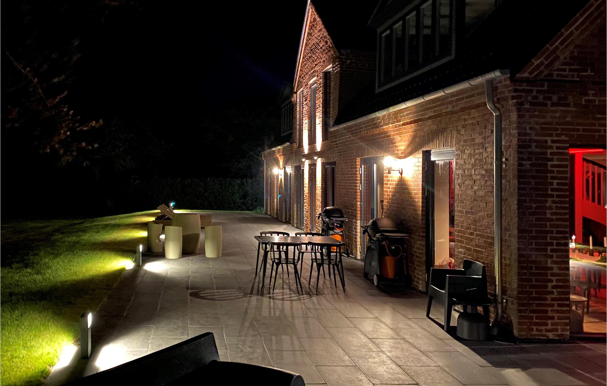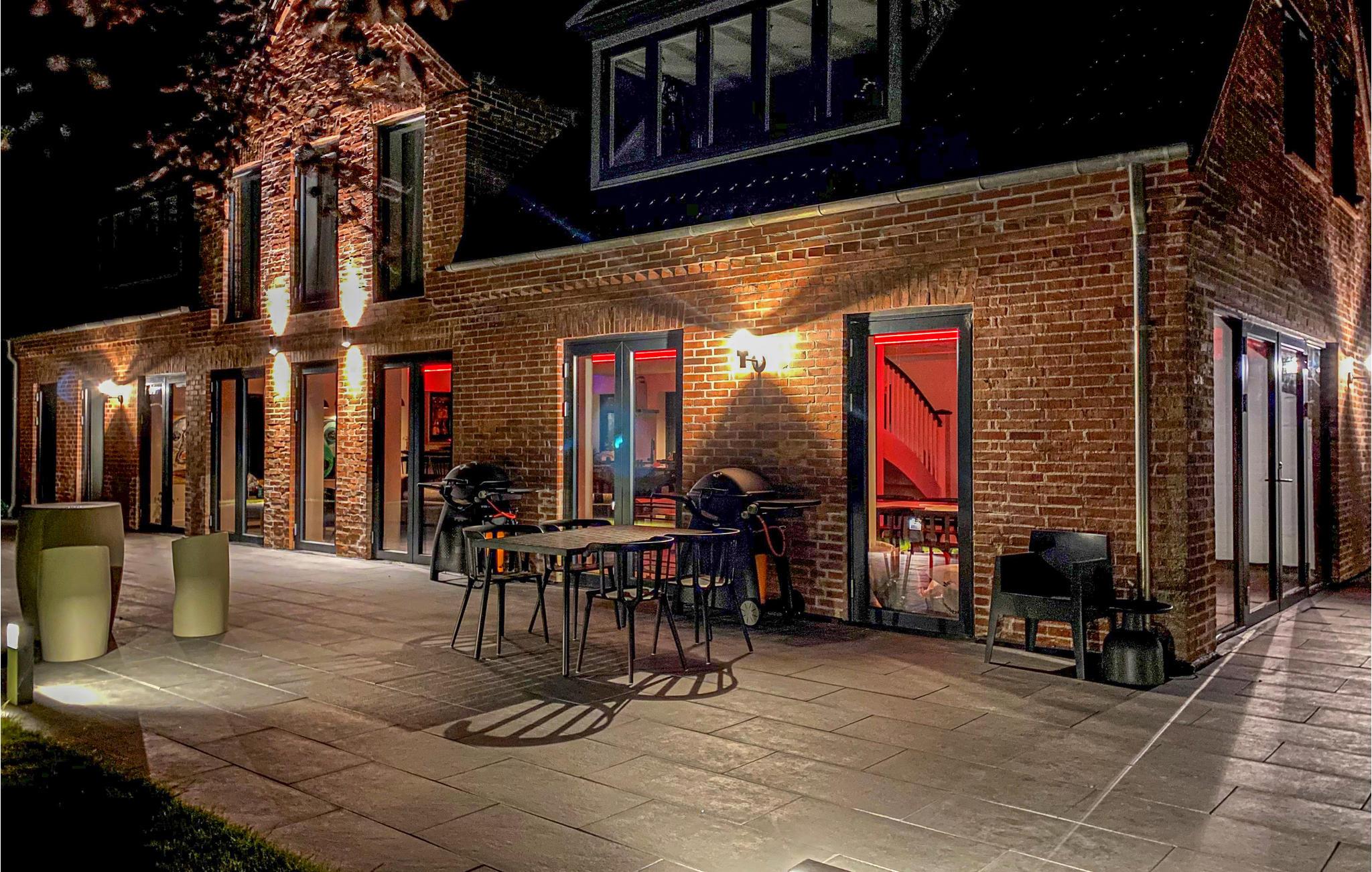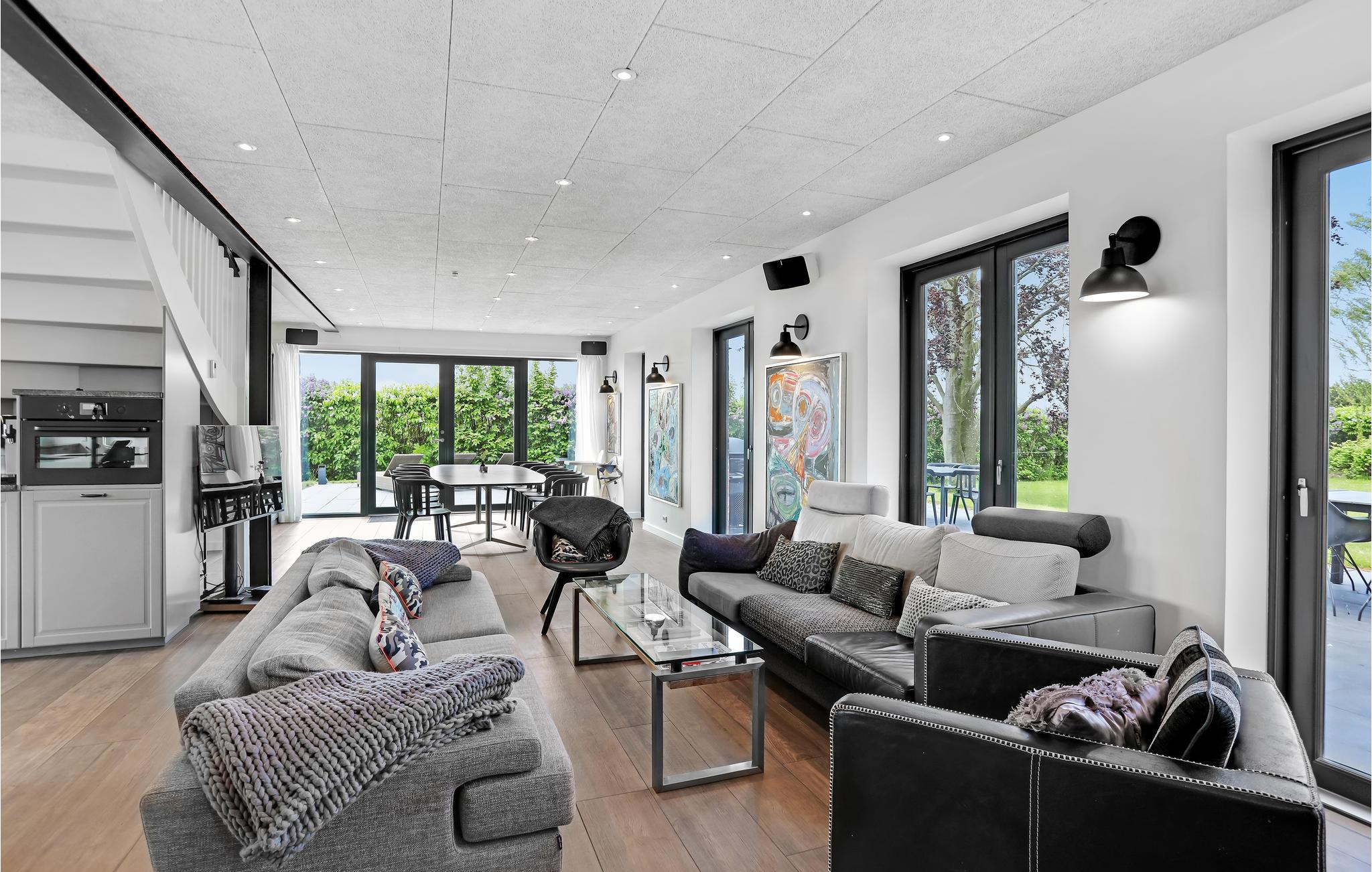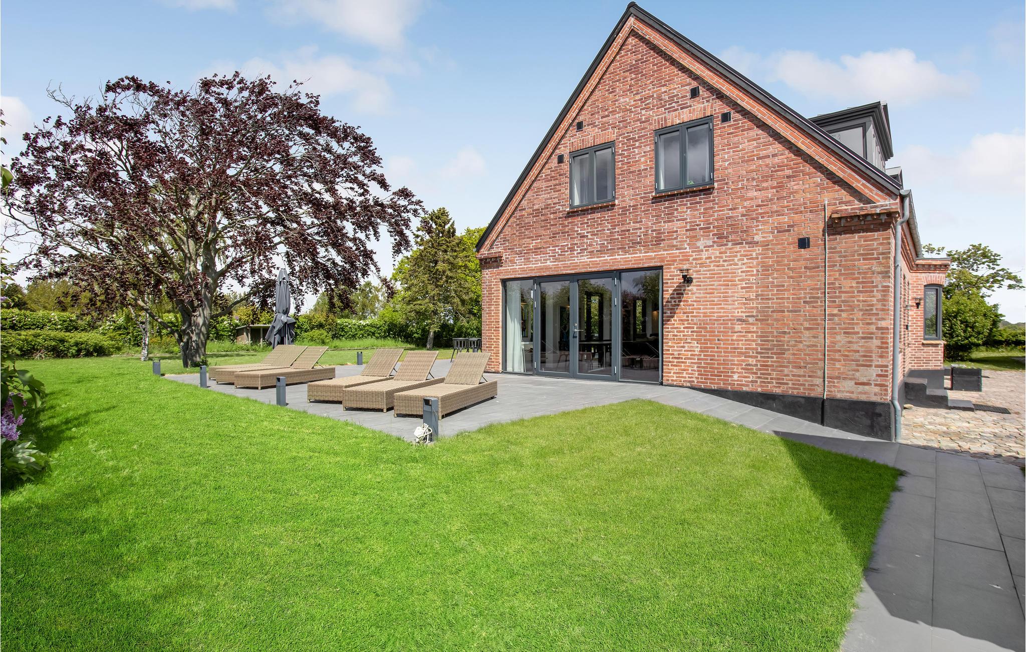 Ved siden af hovedbygningen ligger det 240 m² store, topmoderne multifunktionshus, hvor I kan muntre jer med bordtennis og bordfodbold. Her findes endvidere et køkken, badeværelse med pusleplads samt et gæstetoilet. Fra de mange, store vinduespartier har I en fantastisk udsigt til marker og det flotte landskab. Rundt om huset findes flere dejlige terrasser med lækre kvalitetshavemøbler i flot design, en af terrasserne ligger ud til den hyggelige gårdsplads. Der er god mulighed for leg, boldspil og aktiviteter af enhver slags på den kæmpestore græsplæne.