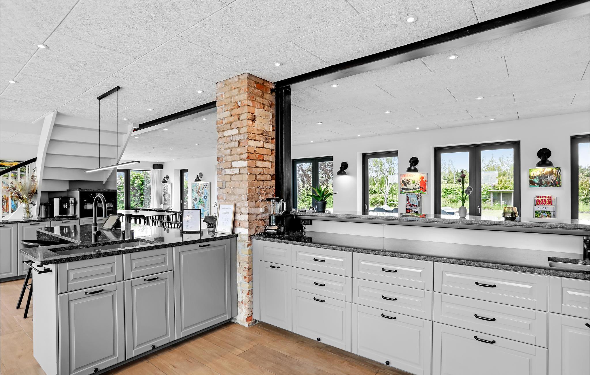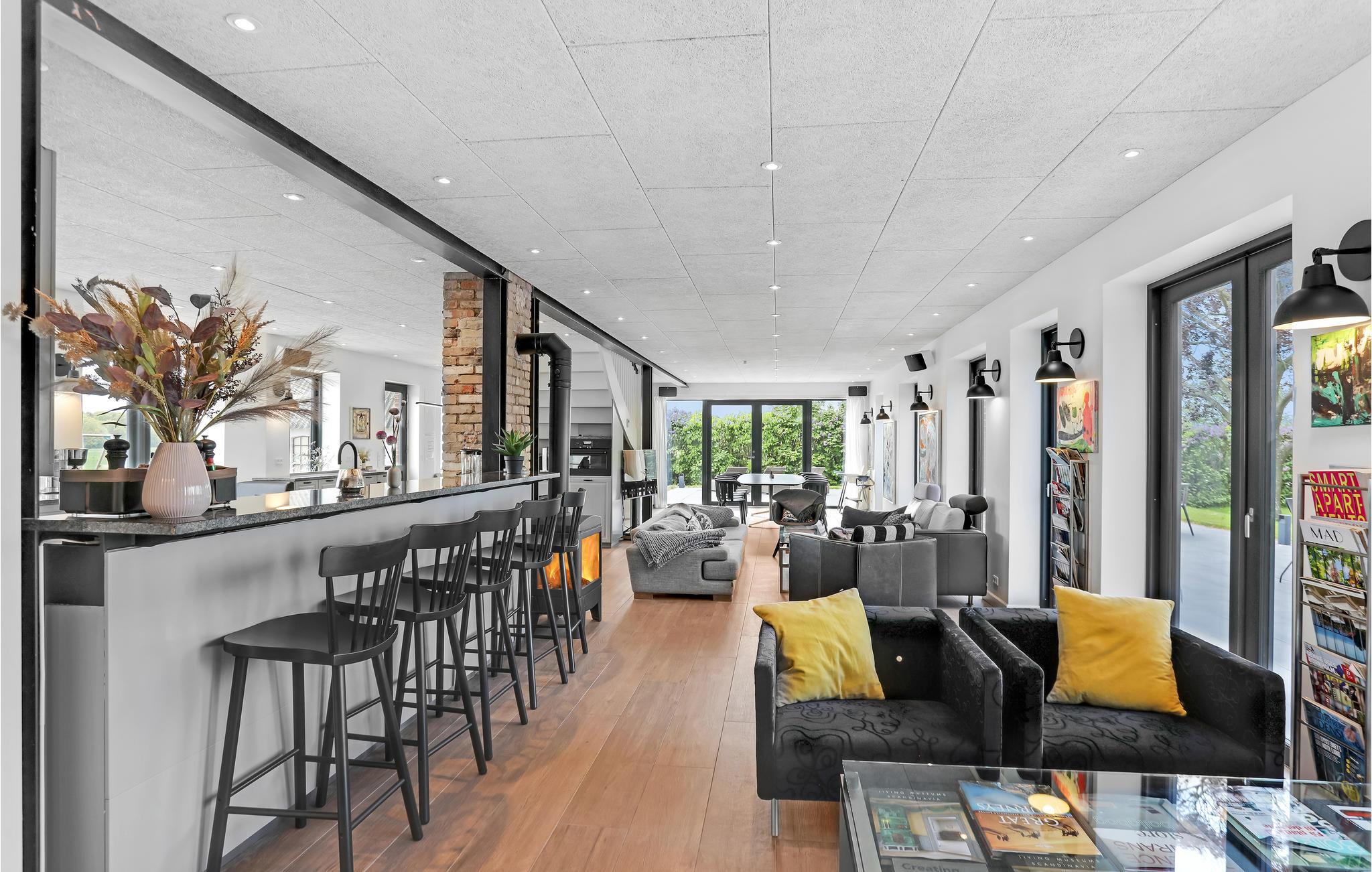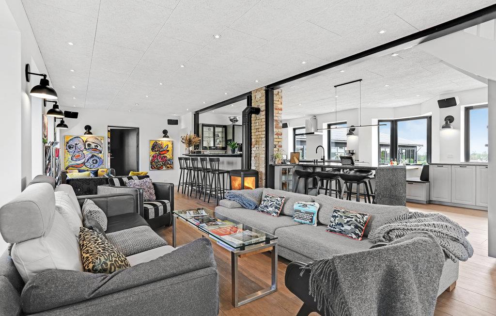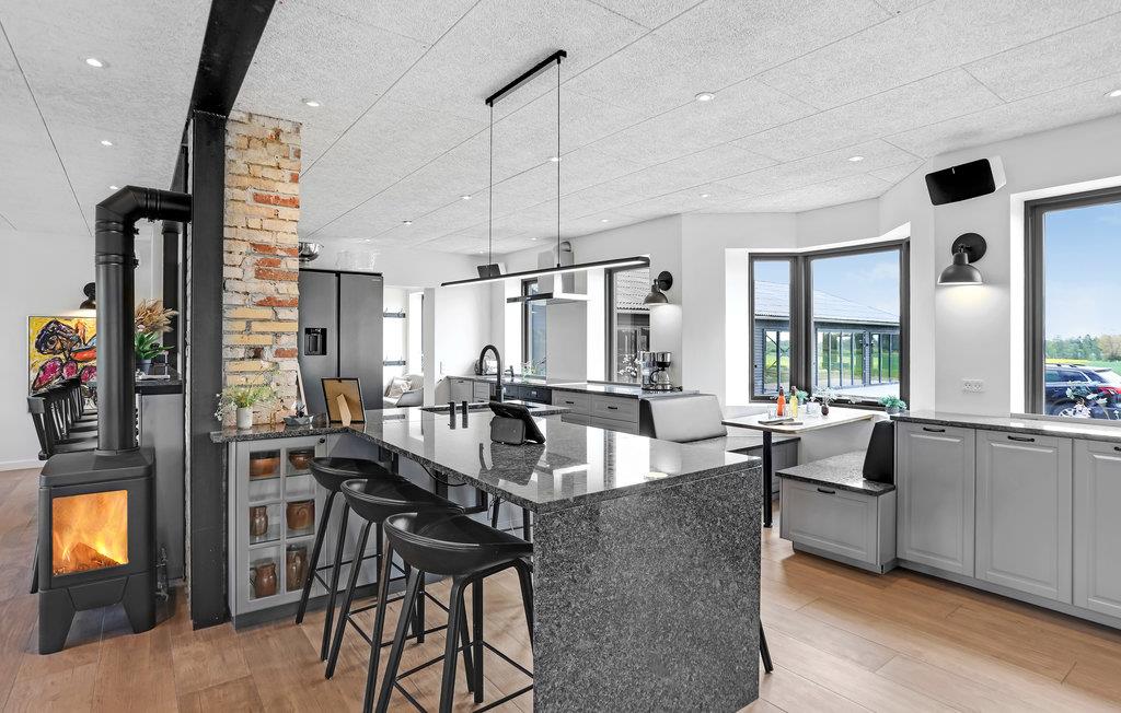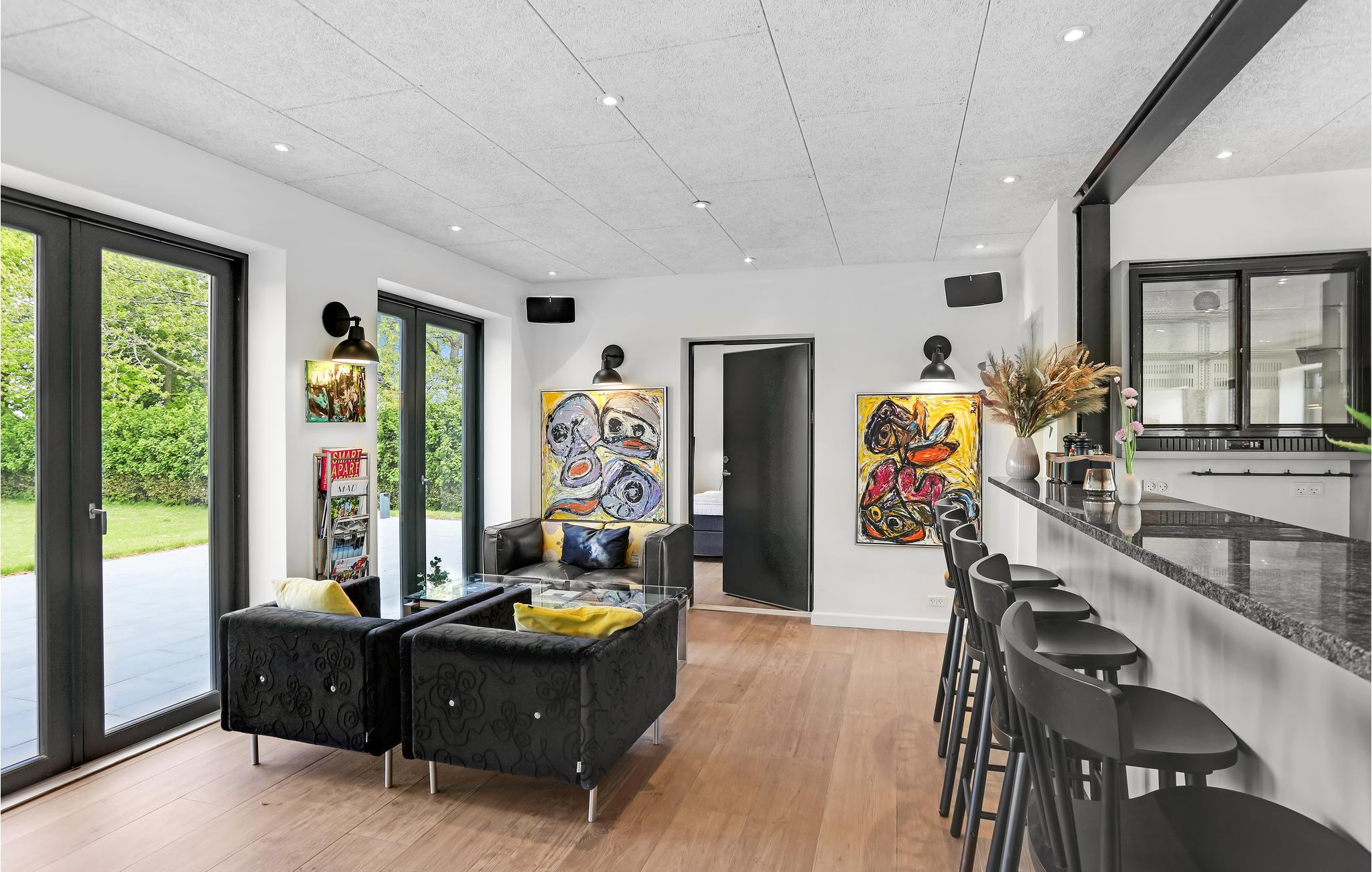 Fantastisk og flot moderniseret liebhaverejendom, hvor hovedhuset er i 2 plan. I boligen findes 8 skønne soveværelser, hvor de 6 af dem ligger på første sal, hvert med eget tilhørende badeværelse. I stueplan kan I hygge jer i det utroligt flotte og velindrettede opholdsrum, der indeholder både køkken, stue og spisestue med plads til alle rundt om bordet. Det charmerende og topmoderne, åbne køkken har flotte detaljer, og det imponerende, smagfuldt indrettede stuemiljø har komfortable designmøbler samt et SONOS musikanlæg/højtalere med en imponerende lyd. Overalt er der brugt kvalitetsmaterialer til indretningen med bl.a. lækre gulve, lyddæmpende lofter og ikke mindst moderne kunst på væggene.