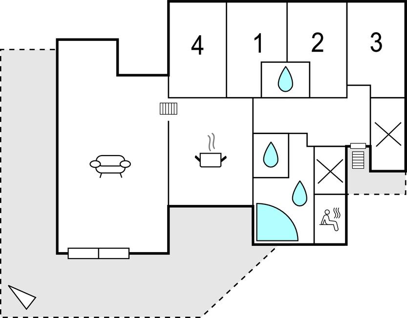 Badeværelse (nr. 1) - WC. Varmt og koldt vand. Bruser
