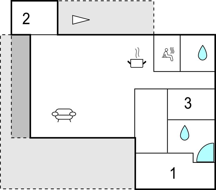 Badeværelse (nr. 2) - WC. Varmt og koldt vand. Bruser