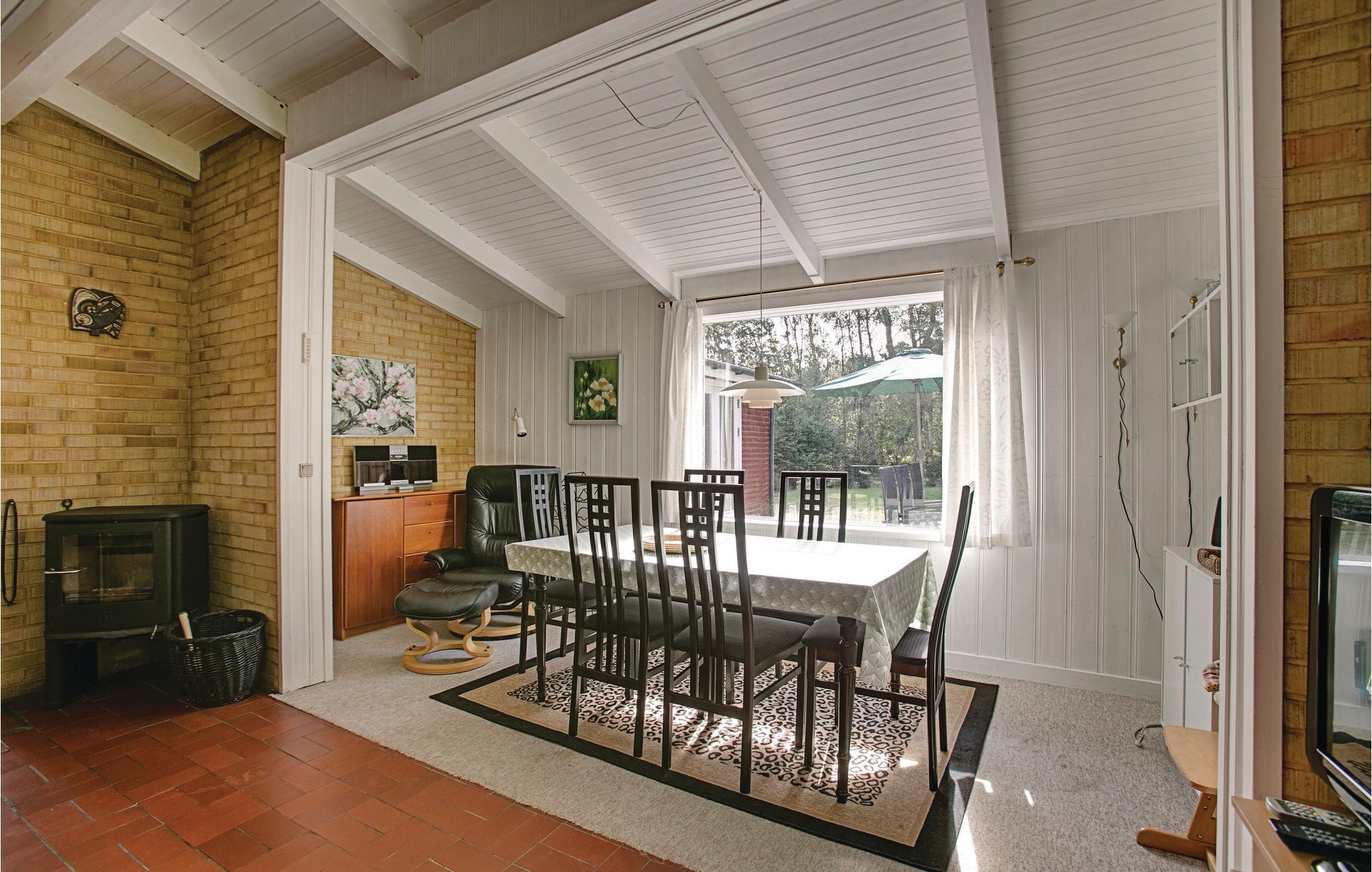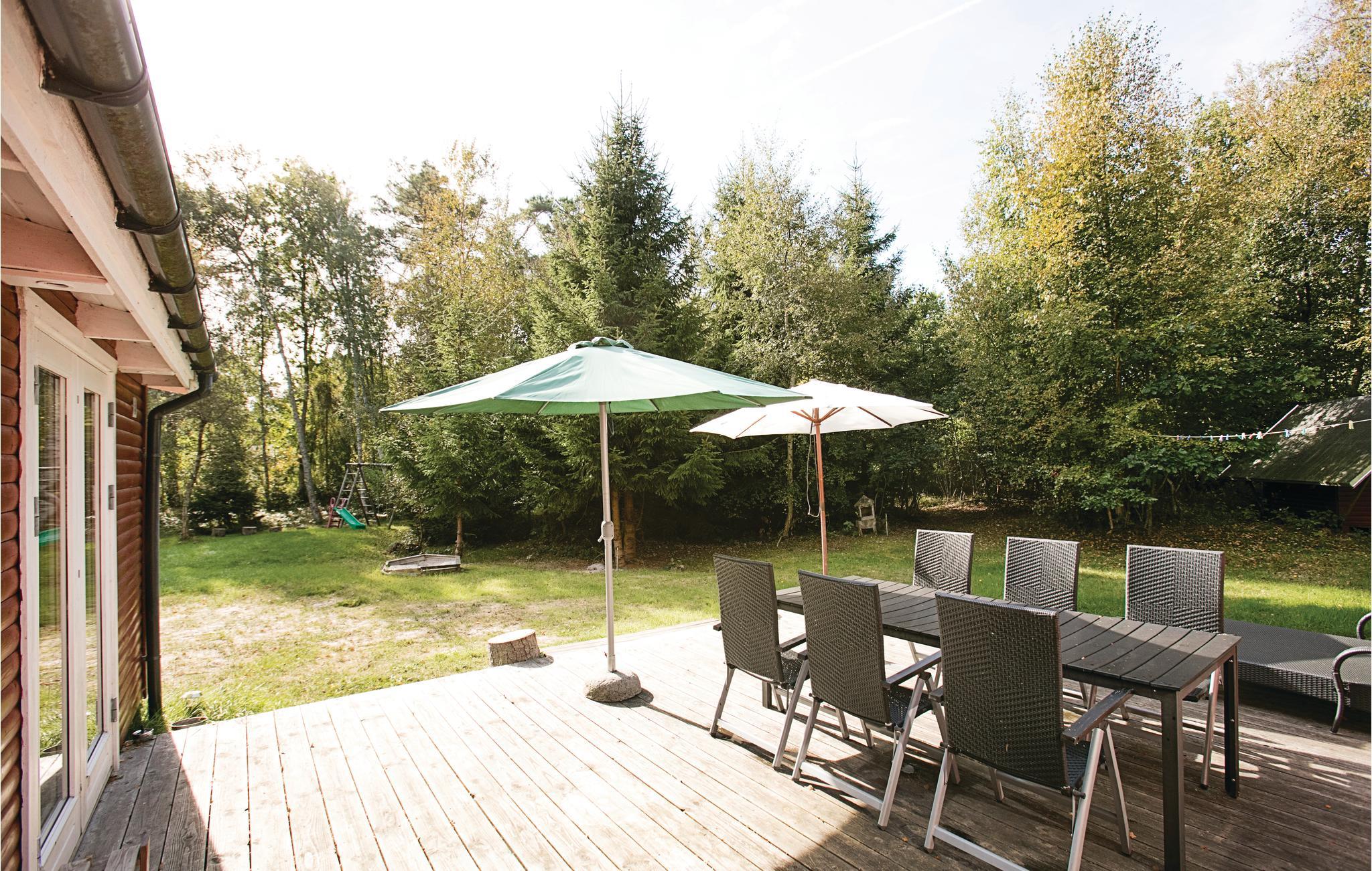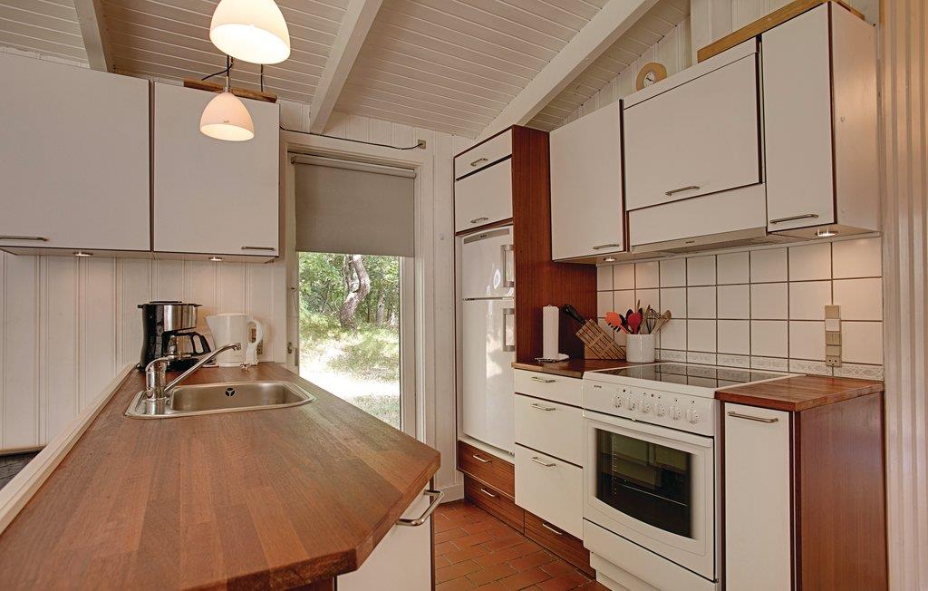 Dette velholdte og nydeligt indrettede feriehus af træ har en attraktiv beliggenhed ikke langt fra en dejlig badestrand, på en stor naturgrund med plads til boldspil. Huset er lyst og venligt indrettet med komfortable møbler og brændeovn samt godt, åbent køkken og spisestue. I 2007 er dette dejlige feriehus udvidet med en afdeling, der indeholder et skønt, stort badeværelse med gulvvarme og spabad samt et flot soveværelse. Fra soveværelset er der udgang til en pragtfuld stor træterrasse. De mange moderne faciliteter gør huset velegnet til ferieophold uanset årstid.