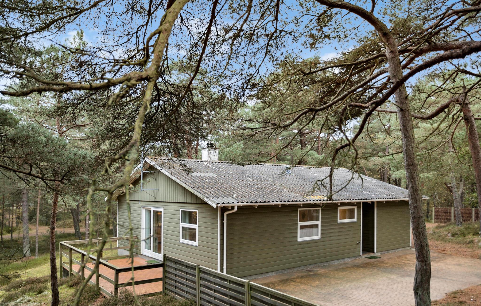 Charmerende træsommerhus tæt på Dueodde strand med åben terrasse og hyggelig brændeovn.