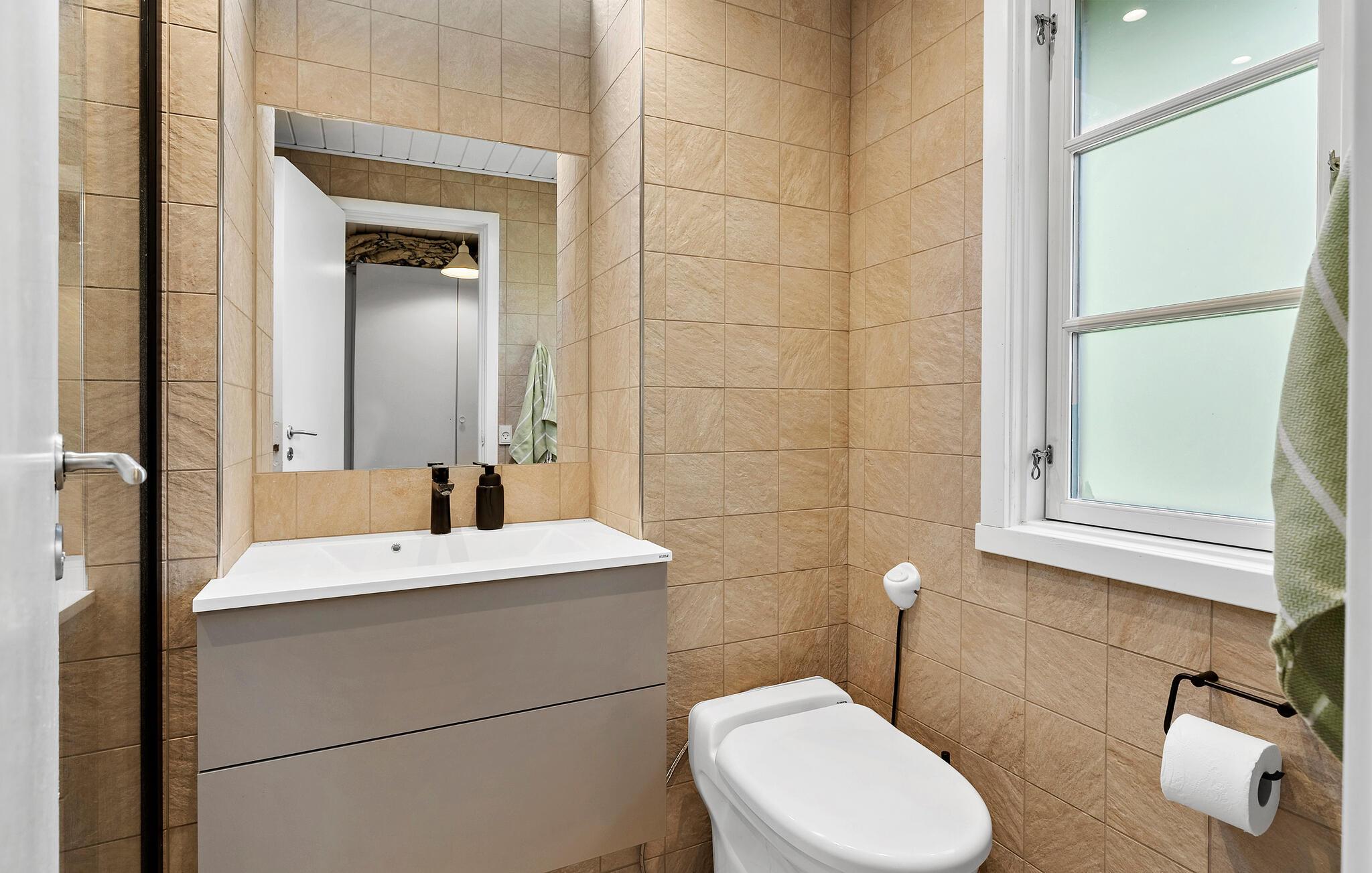Badeværelse (nr. 1) - WC. Varmt og koldt vand. Bruser