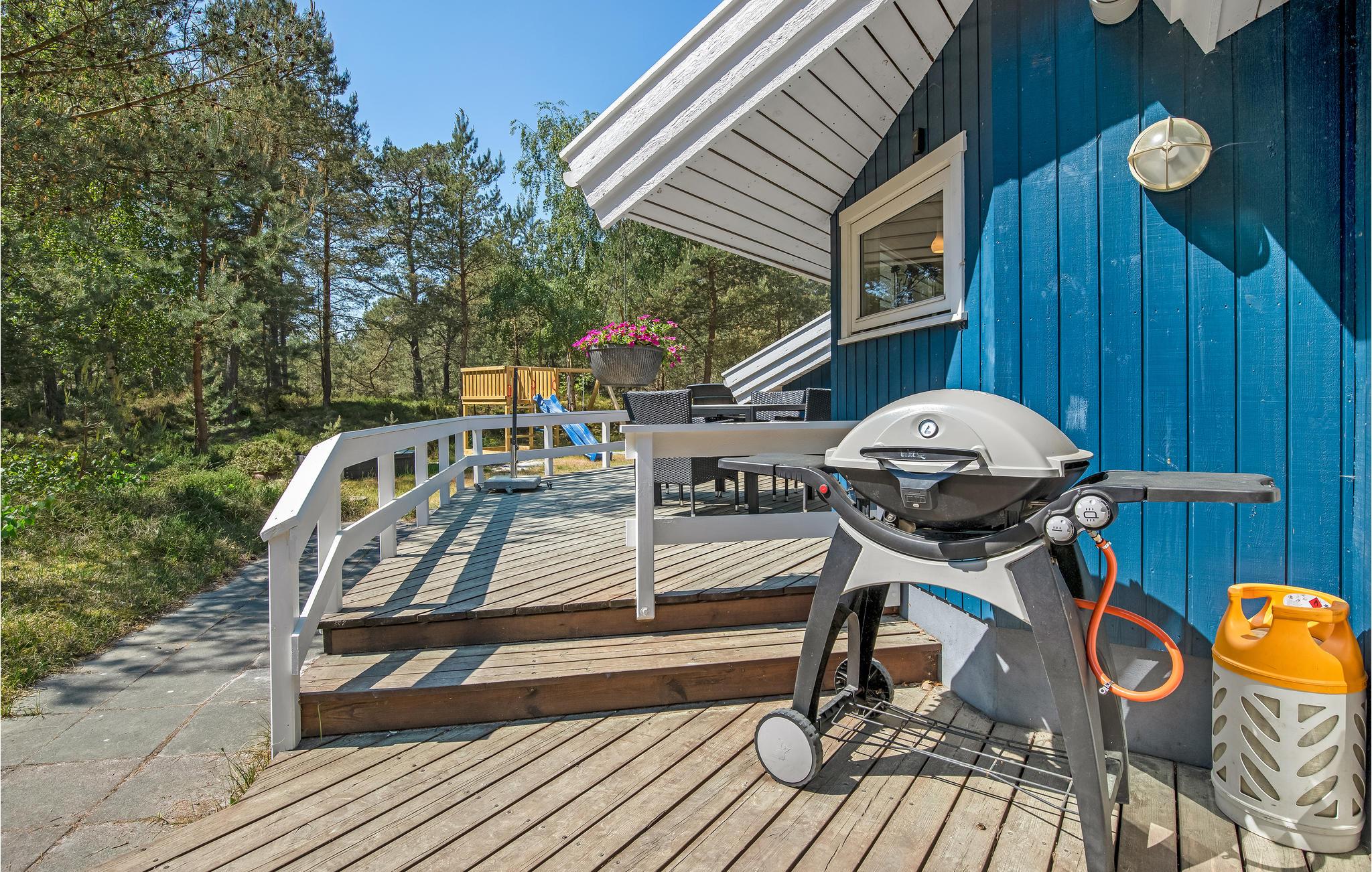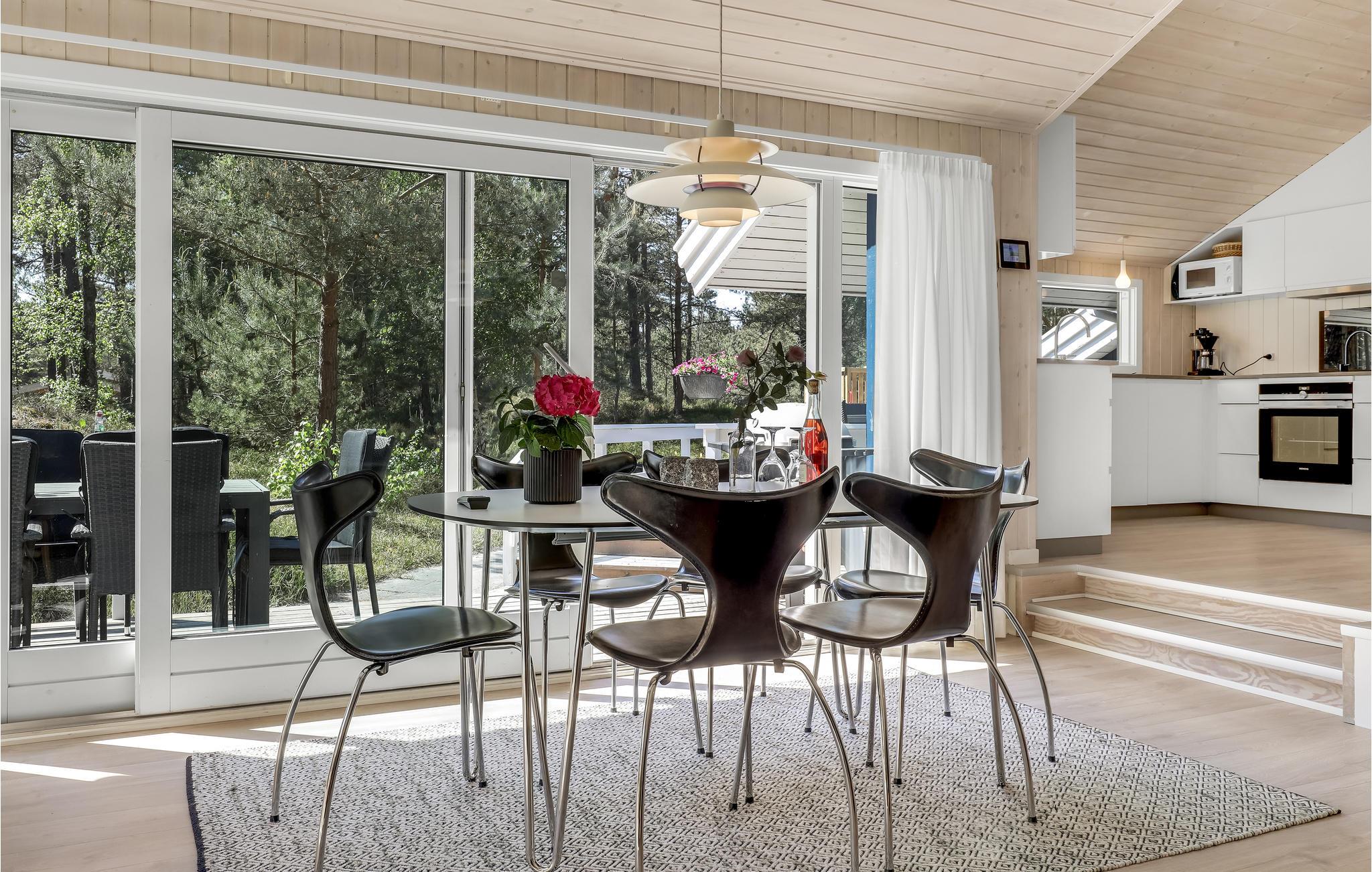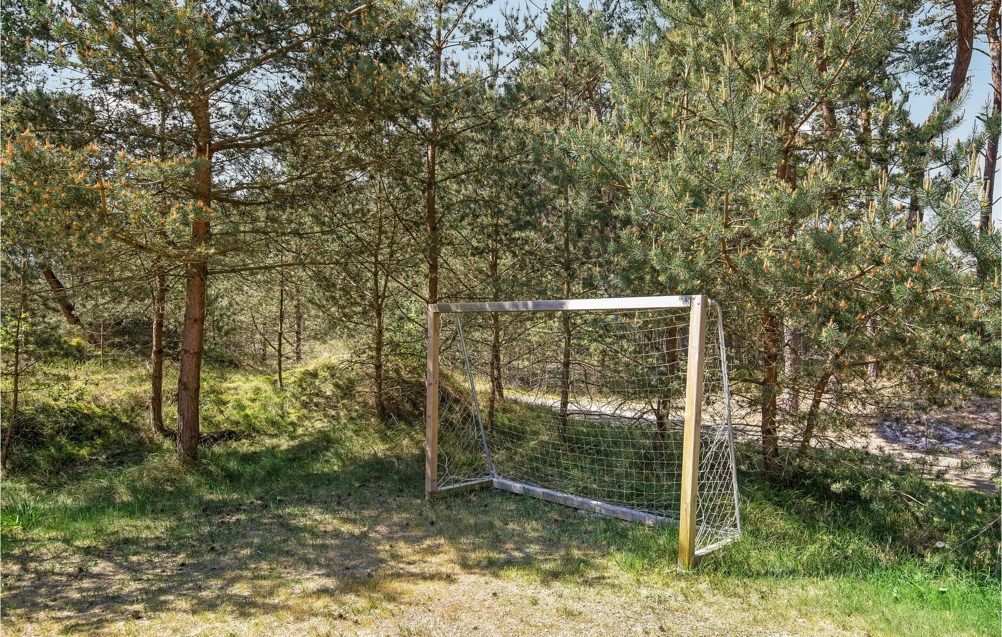 Velholdt og attraktivt beliggende kvalitetsferiehus med stor terrasse og udsigt til grønne omgivelser og smuk natur. Ikke langt til strand og klitområde. Dette velindrettede feriehus byder på et nyt åbent køkken (2020) med god plads til at tilberede de mange feriemåltider, og et par trin ned finder I husets store spise- og opholdsstue med komfortable møbler, brændeovn og med dejlig udsigt til naturen via de store vinduespartier. Her er naturligvis gratis internet. Fra stuer har I direkte udgang til en dejlig stor træterrasse med gode havemøbler og grill, og vi ferien kan nydes i afslappende omgivelser. Til børnene er der gynger, og plads til leg på grunden. Dette dejlige kvalitetsferiehus byder også på fire rummelige soveværelser samt to badeværelser, hvoraf det ene indeholder spabad og sauna. Husets mange moderne faciliteter og den høje komfort gør dette feriehus velegnet ferieophold uanset årstid.