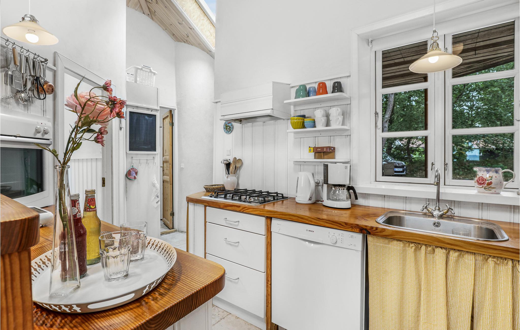 Unikt beliggende træsommerhus i 1. række til dejlig sandstrand. Fra dette charmerende og hyggelige sommerhus har I direkte adgang til stranden, og en tur i Østersøen kan varmt anbefales. Sommerhuset er i 2019/2020 ved at blive udvidet med en privat afdeling, der ikke indgår i udlejningen, men der bygges ikke i udlejningssæsonen. Dette unikke sommerhus er meget charmerende og rustikt indrettet med runde vægge og højt til loftet i stueområdet. Hyggeligt åbent køkken og 3 mindre soveværelser. Velindrettet badeværelse med lille men hyggelig sauna. Fra husets meget hyggelige stue er der adgang til en lille hems. Der er udgang til en dejlig træterrasse fra stuen og skøn udsigt til havet og den pragtfulde bornholmske natur. Egen sti til stranden. Husets størrelse gør det velegnet til 4 personer, hvis ferien skal nydes optimalt. Dette unikke sommerhus er ganske enkelt en perle - dels på grund af den fantastiske beliggenhed og dels som følge af sin helt egen stil og arkitektur. Området er velegnet til cykel- og vandreture, og der er heller ikke langt til det populære fiskerleje, Snogebæk, hvor I har gode indkøbsmuligheder og attraktive småbutikker og restauranter.