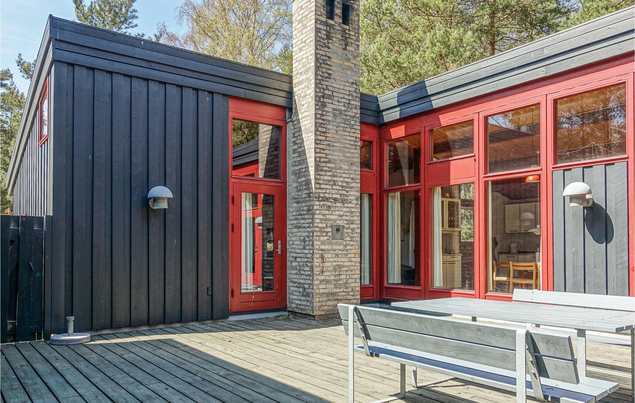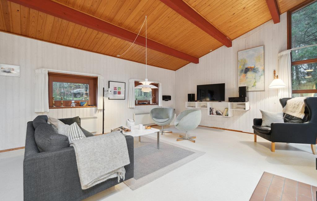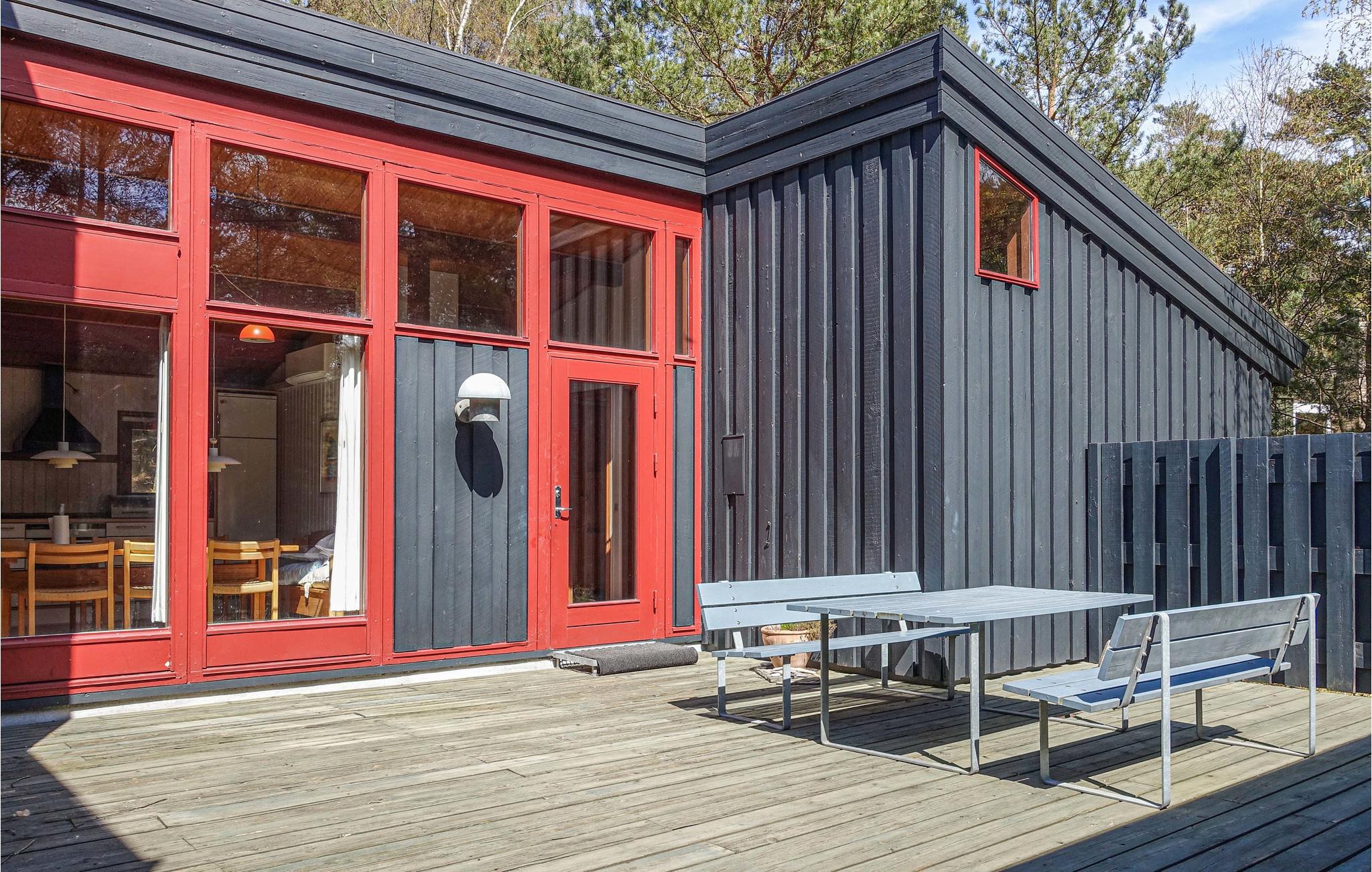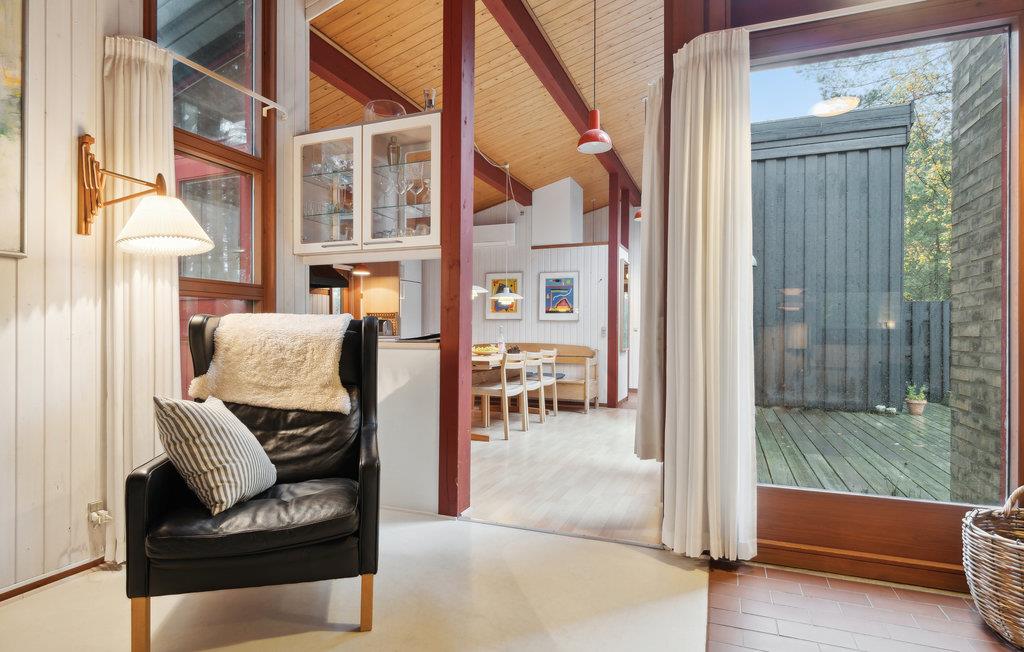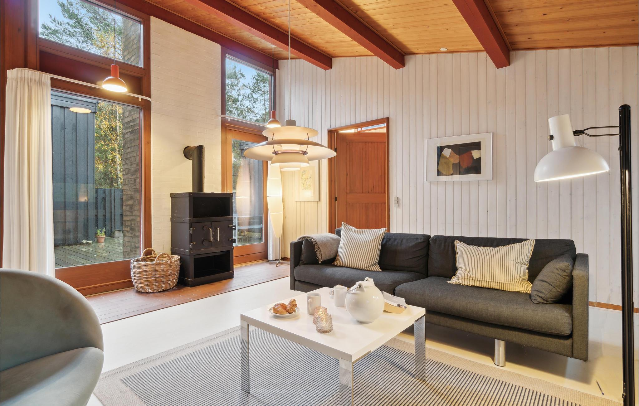 Arkitekttegnet sommerhus i træ nær Dueodde strand og golfbane med hyggelig brændeovn og solrig terrasse.
