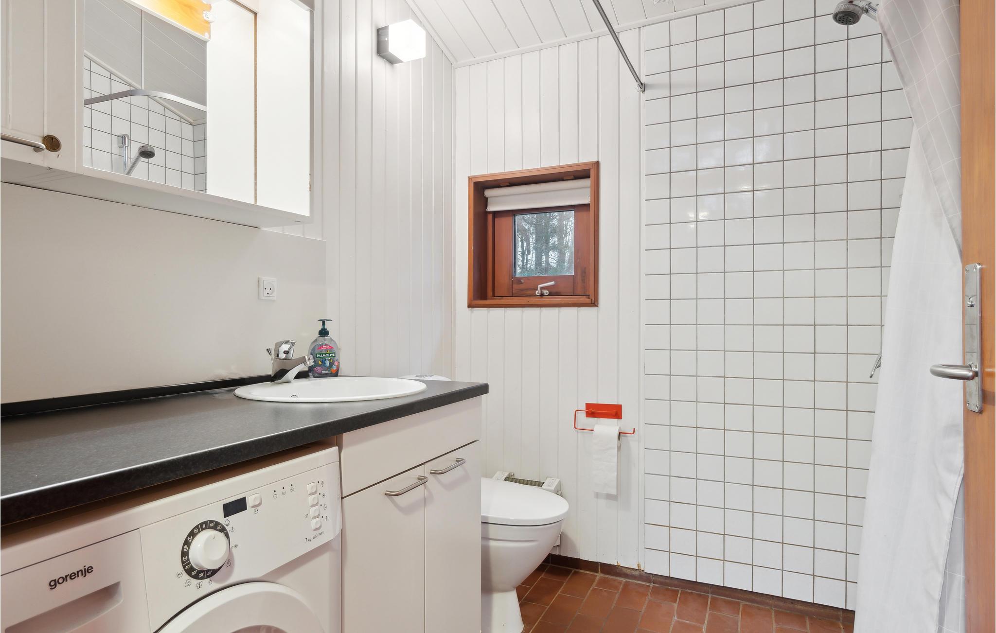 Husets hjerte er den hyggelige og smagfuldt indrettede opholdsstue, hvor I kan se film, høre radio eller musik, hyggesnakke i komfortable møbler og om efteråret eller vinteren nyde varmen og hyggestemningen fra brændeovnen. I det åbne, veludstyrede køkken med spiseplads er det en leg at tilberede dejlige feriemåltider. Husets badeværelse har vaskemaskine og behagelig gulvvarme.