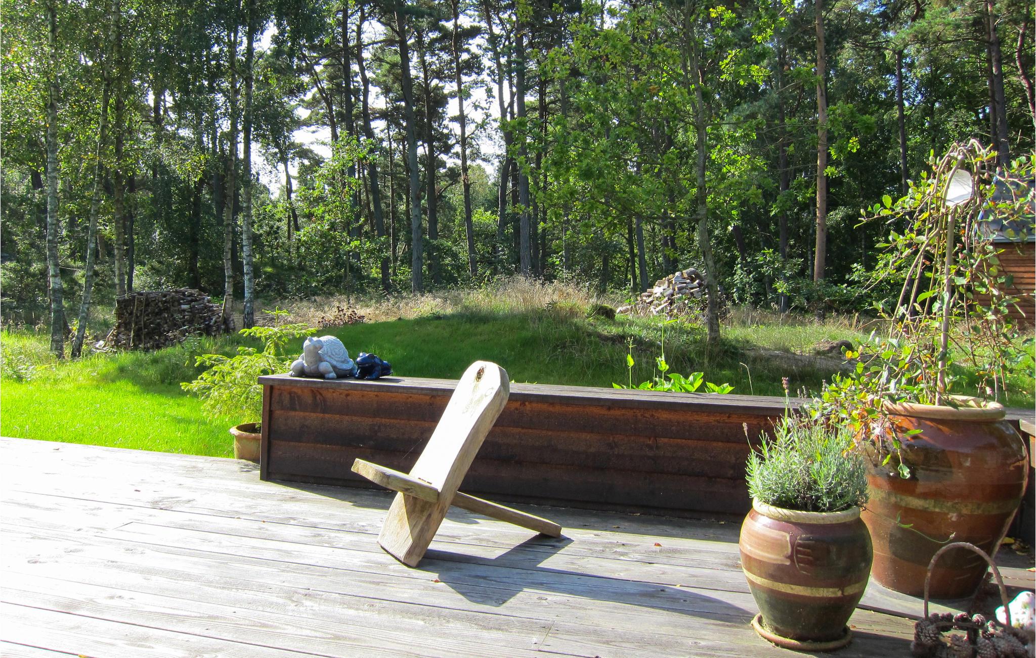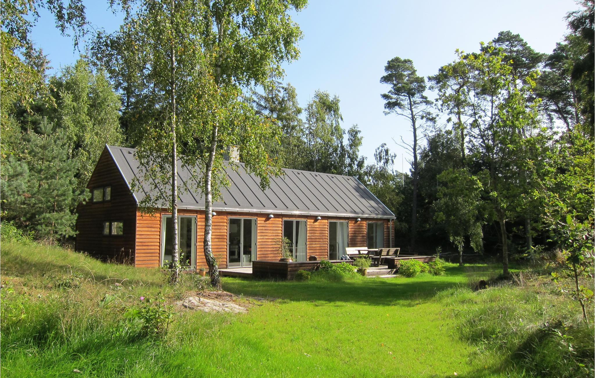 Lækkert feriehus nær Dueoddes sandstrand med pejs, terrasse og skøn naturgrund.