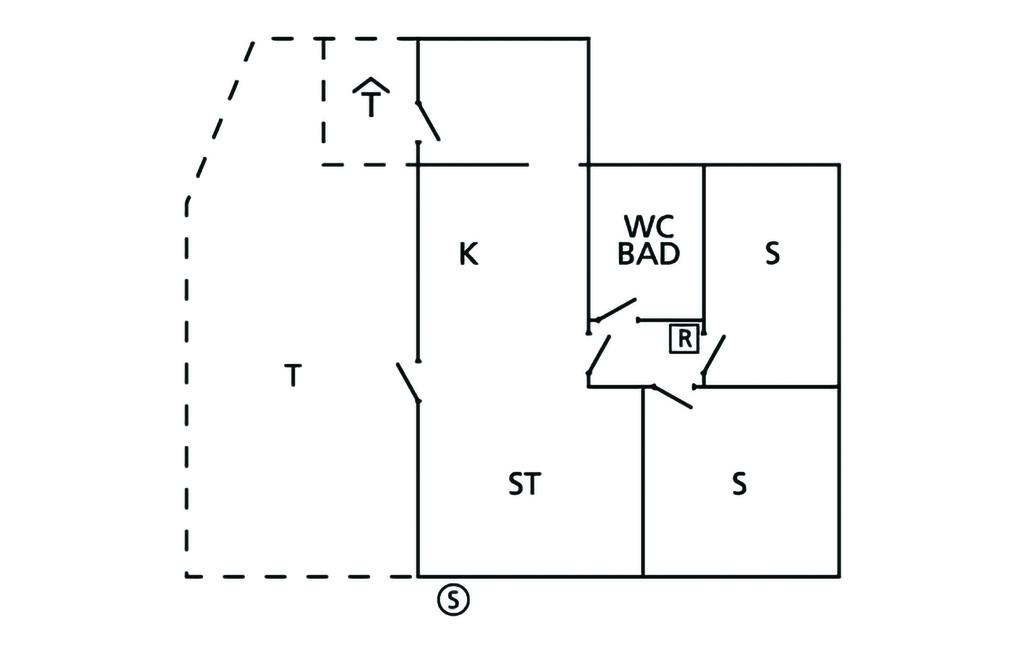 Soveværelse (nr. 1) - 1 Soveplads. (Enkeltseng(e)). 2 Sovepladser. (Etageseng(e)).