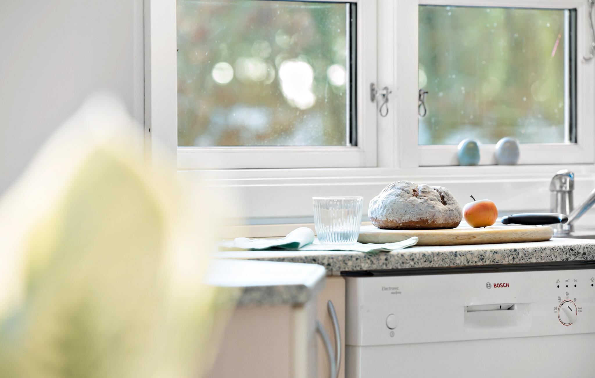 I husets nydelige opholdsstue kan I se film, høre radio eller musik, spille kort og bare hyggesnakke. Huset har et stort, lyst og dejligt åbent køkken med spiseplads ved siden af en brændeovn, som skaber en hyggelig atmosfære i køligere sæsoner. Husets flotte badeværelse har vaskemaskine, gulvvarme og en sauna til herlig ferieafslapning.