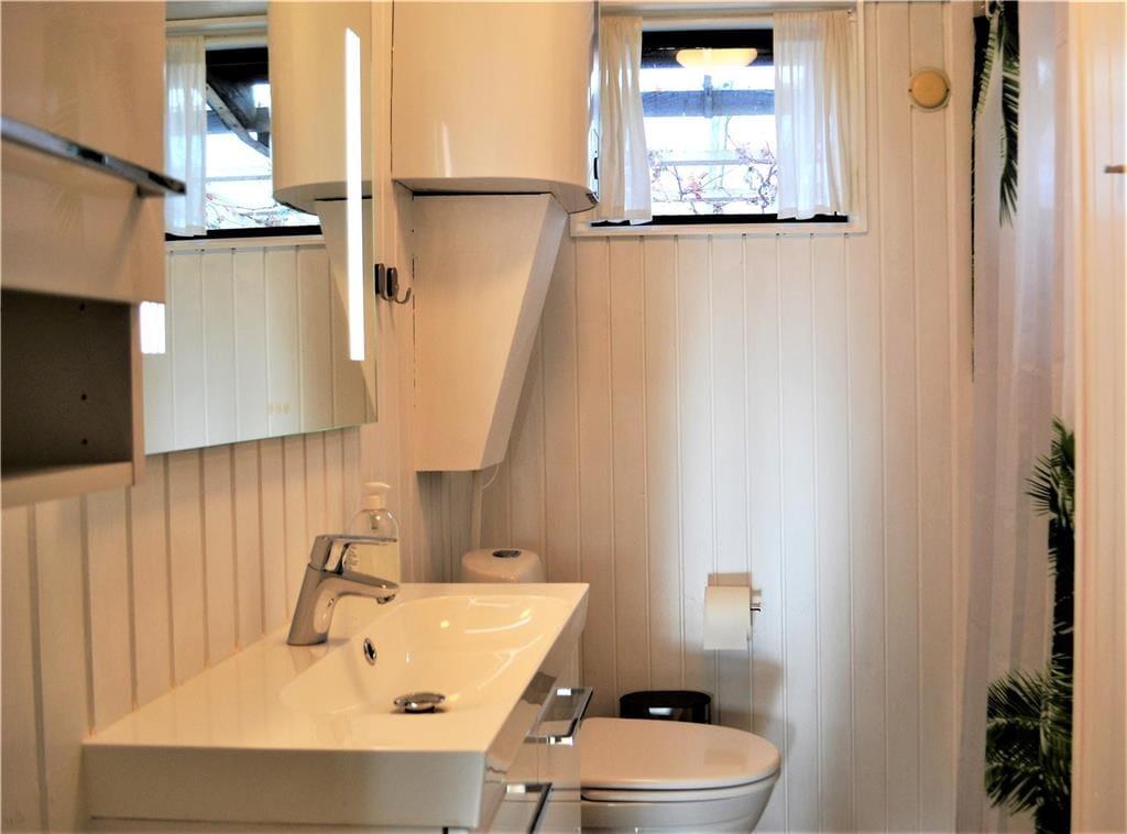 Den overdækkede terrasse inviterer til stille øjeblikke og dybe samtaler, indhyllet i duften af træ og sommer. Her er skabt rammerne for dyrebare stunder sammen. Sommerhuset emmer af hjem og velvære.