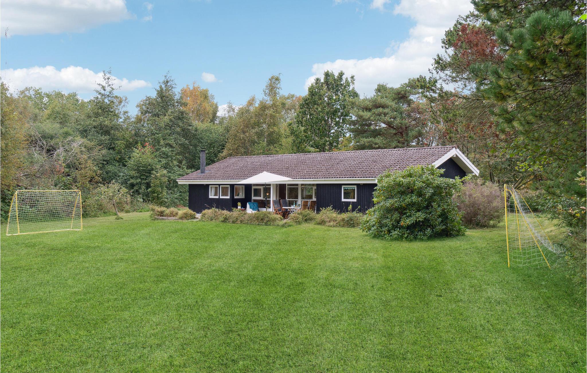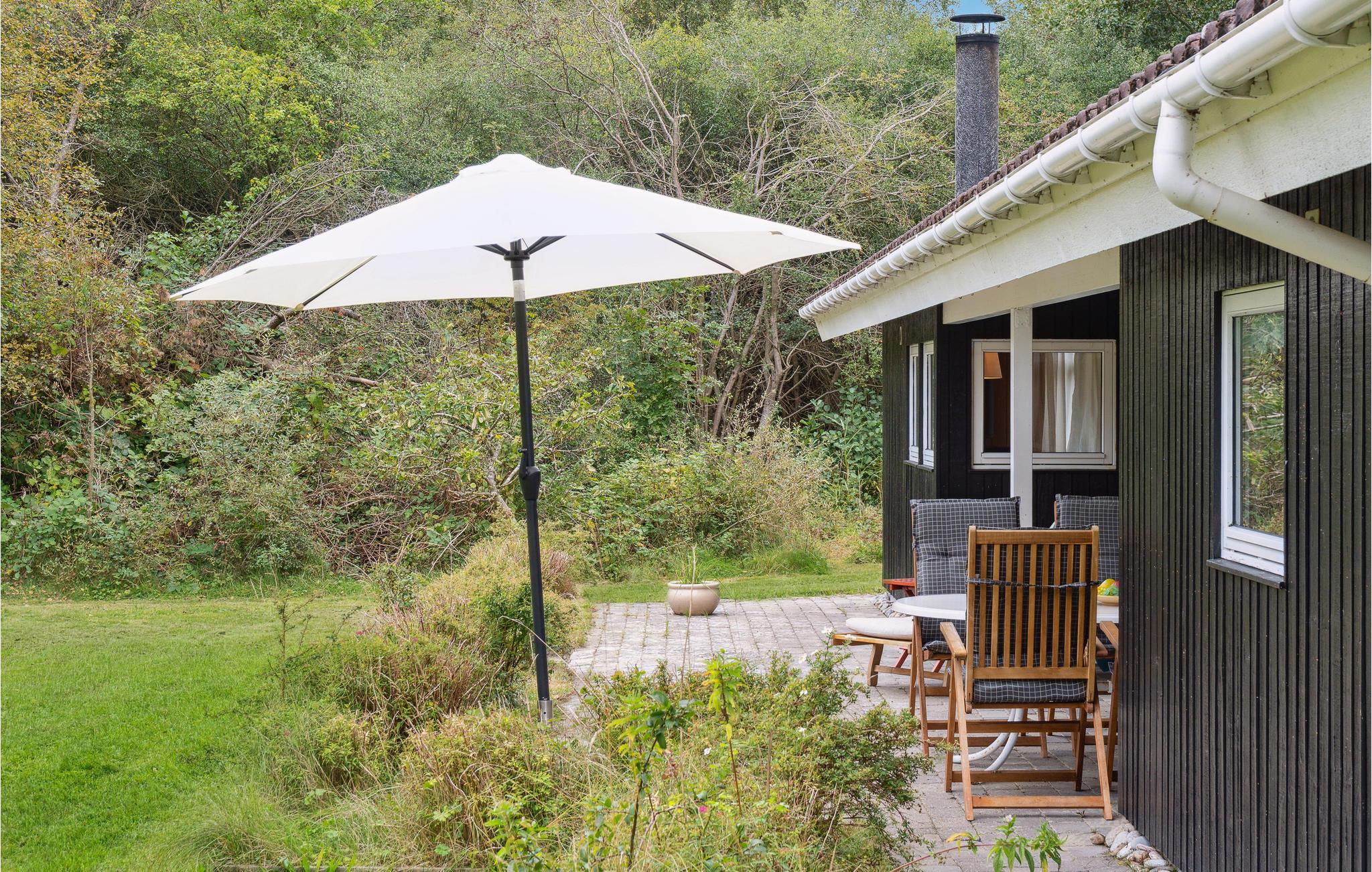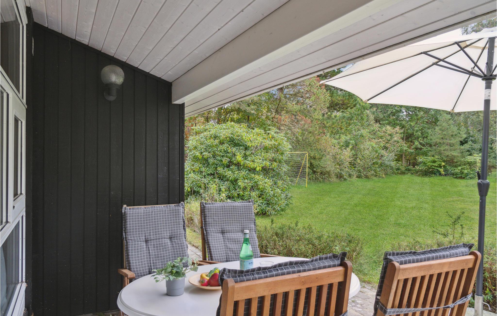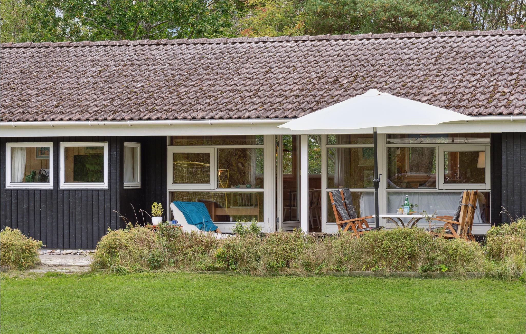Velkommen til dette tiltalende hus, hvor I kan tilbringe en herlig tid med dem, I holder af. Huset ligger i gåafstand til havet, og med sin hjemlige indretning, som får et varmt udtryk af væggenes træbeklædning, er det det ideelle sted til en afslappende pause fra hverdagen. Uanset om I dyster i spil ved spisebordet om aftenen eller slapper af sammen i sofaen, kan I nyde en smuk udsigt over haven gennem de store vinduer. På kølige dage spreder brændeovnen ikke blot varme, men også hygge. Efter et lækkert måltid fra grillen på terrassen kan I få gang i kredsløbet igen med et spil bordtennis eller fodbold.