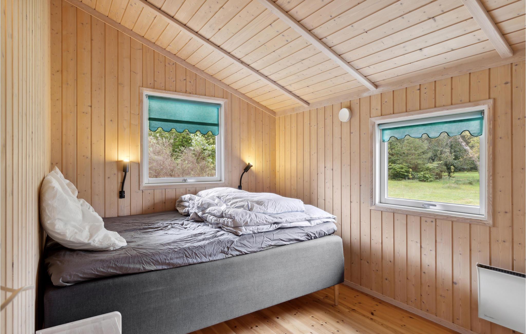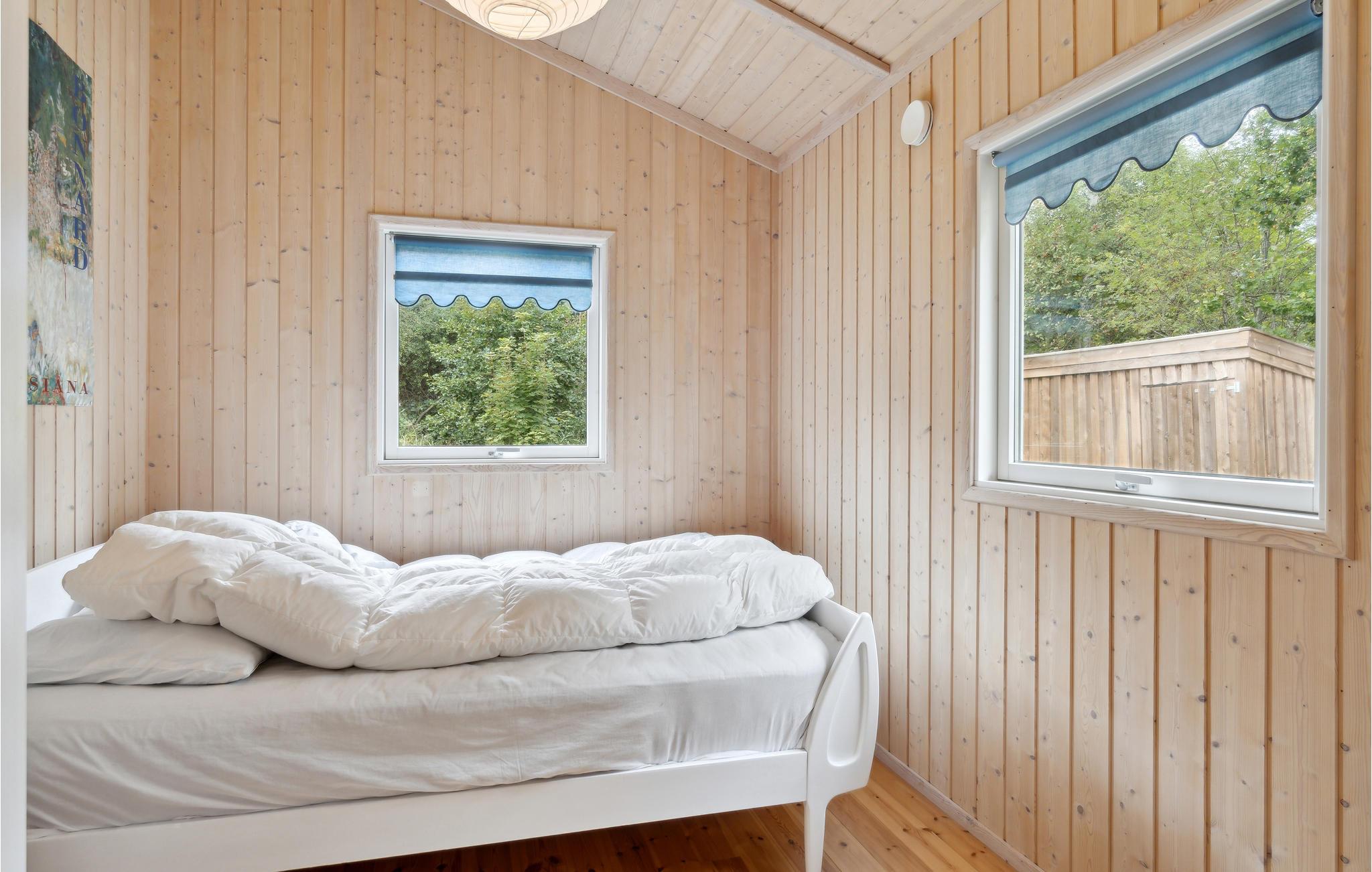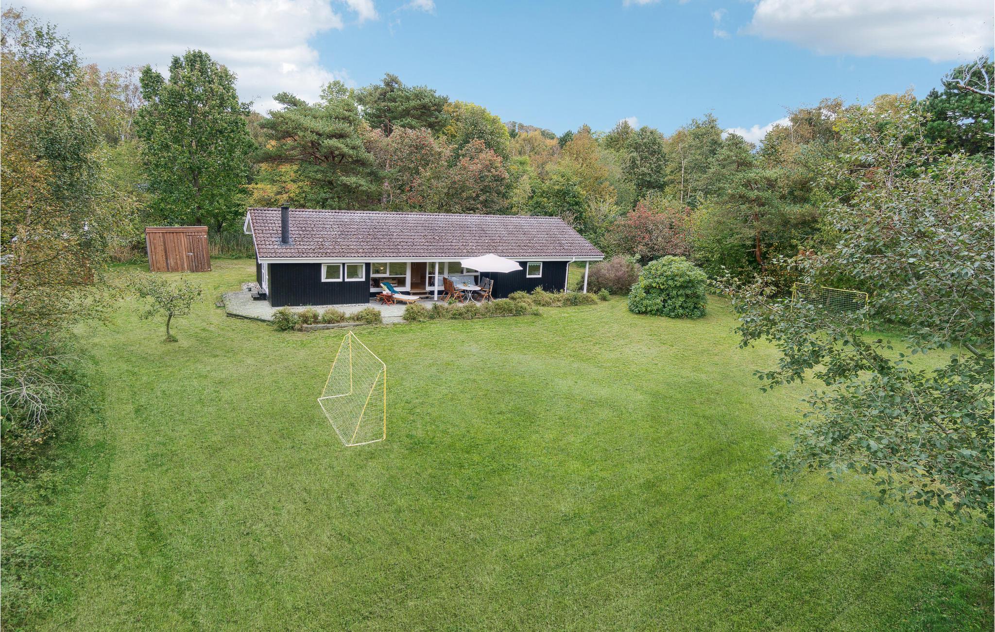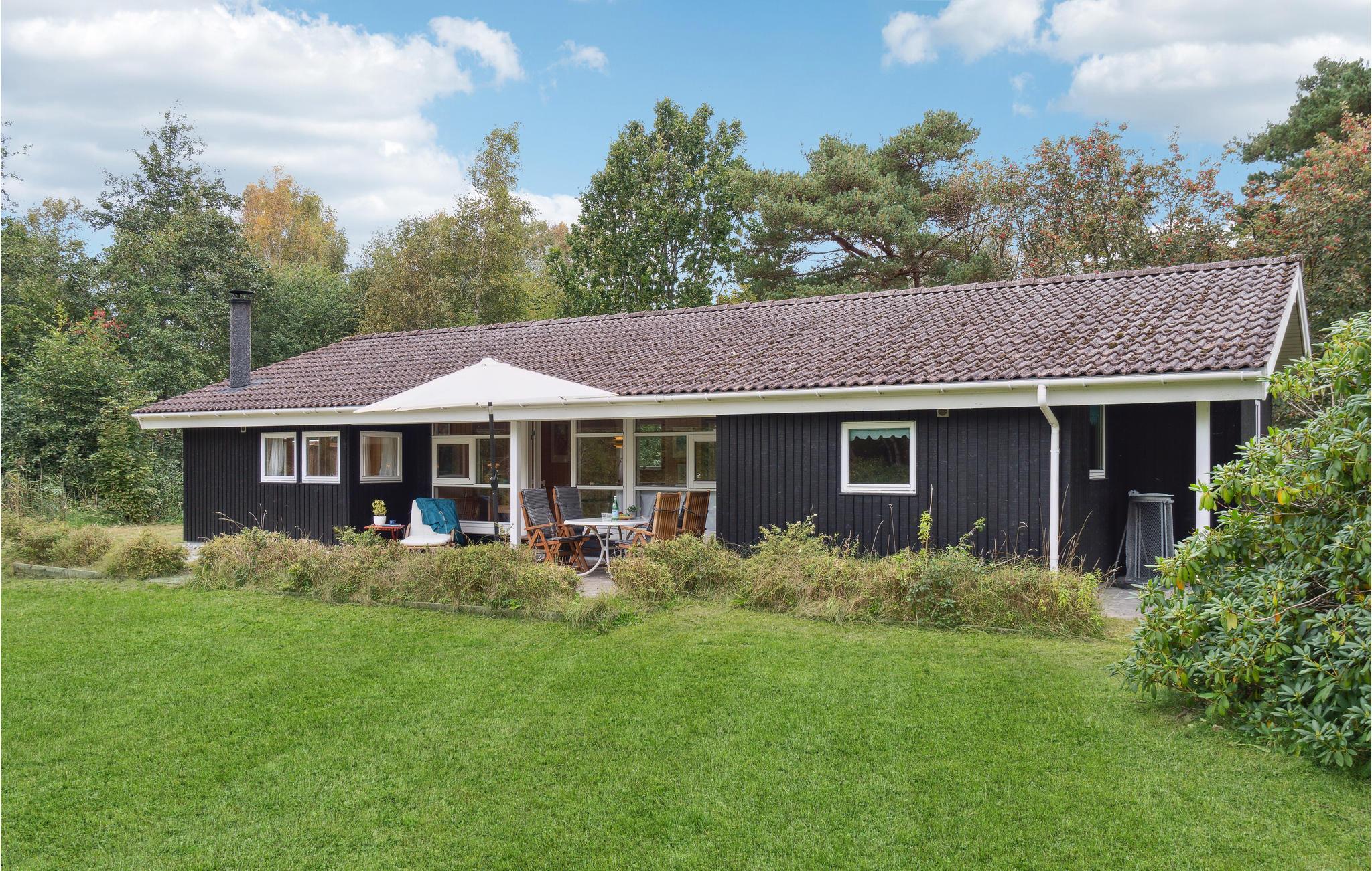 Velkommen til dette tiltalende hus, hvor I kan tilbringe en herlig tid med dem, I holder af. Huset ligger i gåafstand til havet, og med sin hjemlige indretning, som får et varmt udtryk af væggenes træbeklædning, er det det ideelle sted til en afslappende pause fra hverdagen. Uanset om I dyster i spil ved spisebordet om aftenen eller slapper af sammen i sofaen, kan I nyde en smuk udsigt over haven gennem de store vinduer. På kølige dage spreder brændeovnen ikke blot varme, men også hygge. Efter et lækkert måltid fra grillen på terrassen kan I få gang i kredsløbet igen med et spil bordtennis eller fodbold.