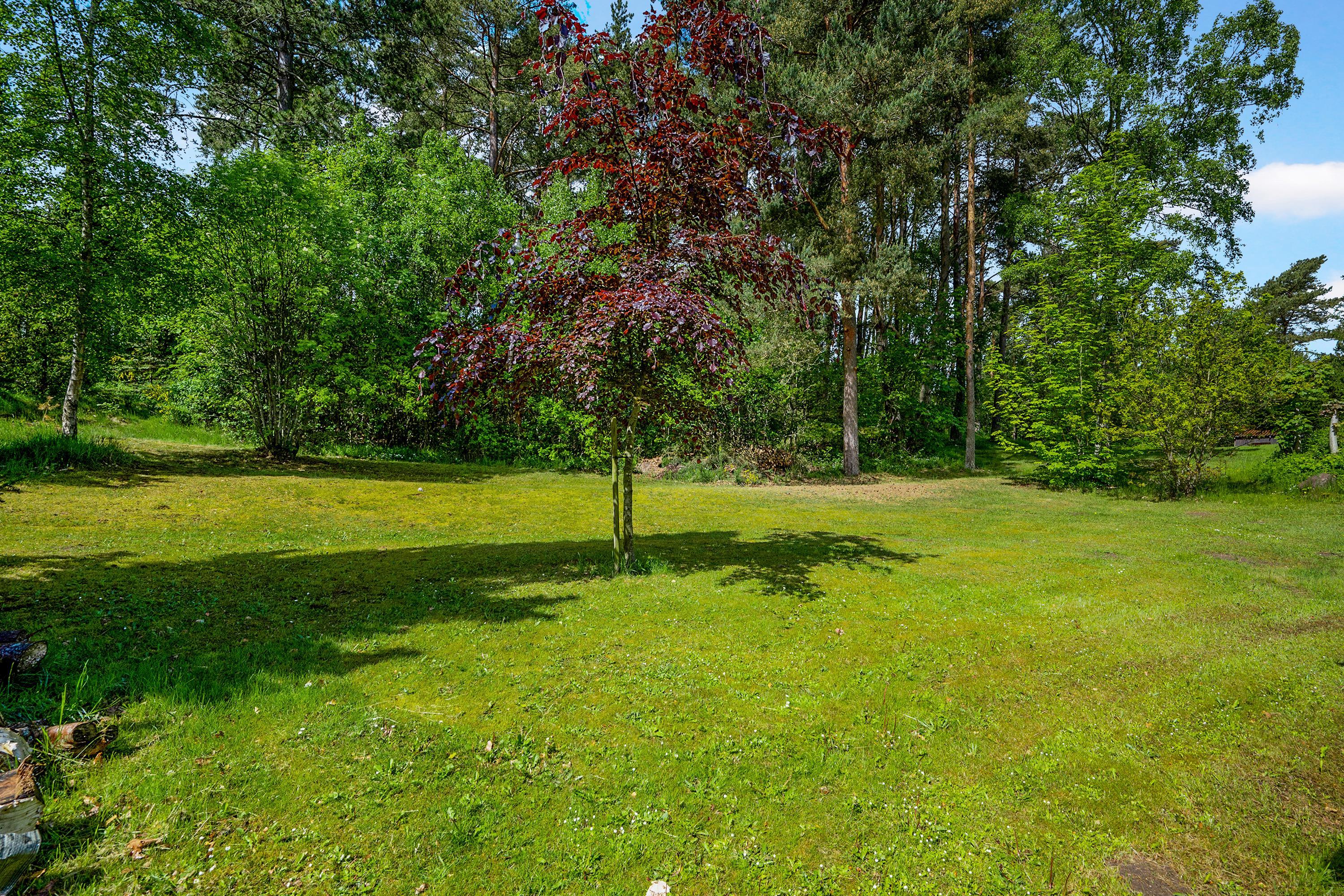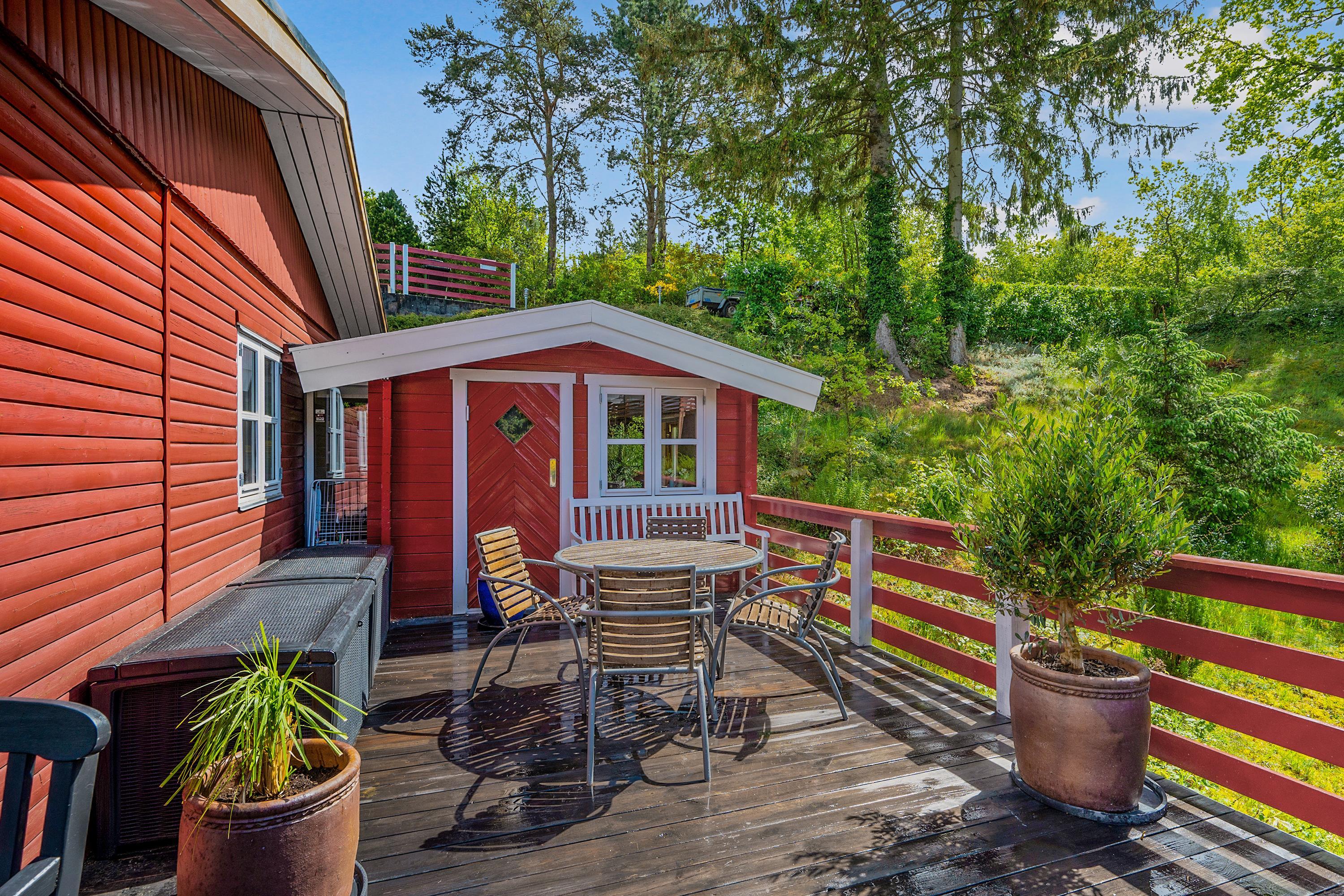 Naturskønt beliggende i hyggeligt skovområde få km fra Ebeltoft centrum, med badestrande mod øst og vest samt i gåafstand til Golfbanen, finder man dette charmerende feriehus. Skøn, sydvestvendt træterrasse med flot udsigt over den skrånende grund, hvor man bl.a. kan se græssende råvildt. Her er gode havemøbler, liggestole, parasol og grill.