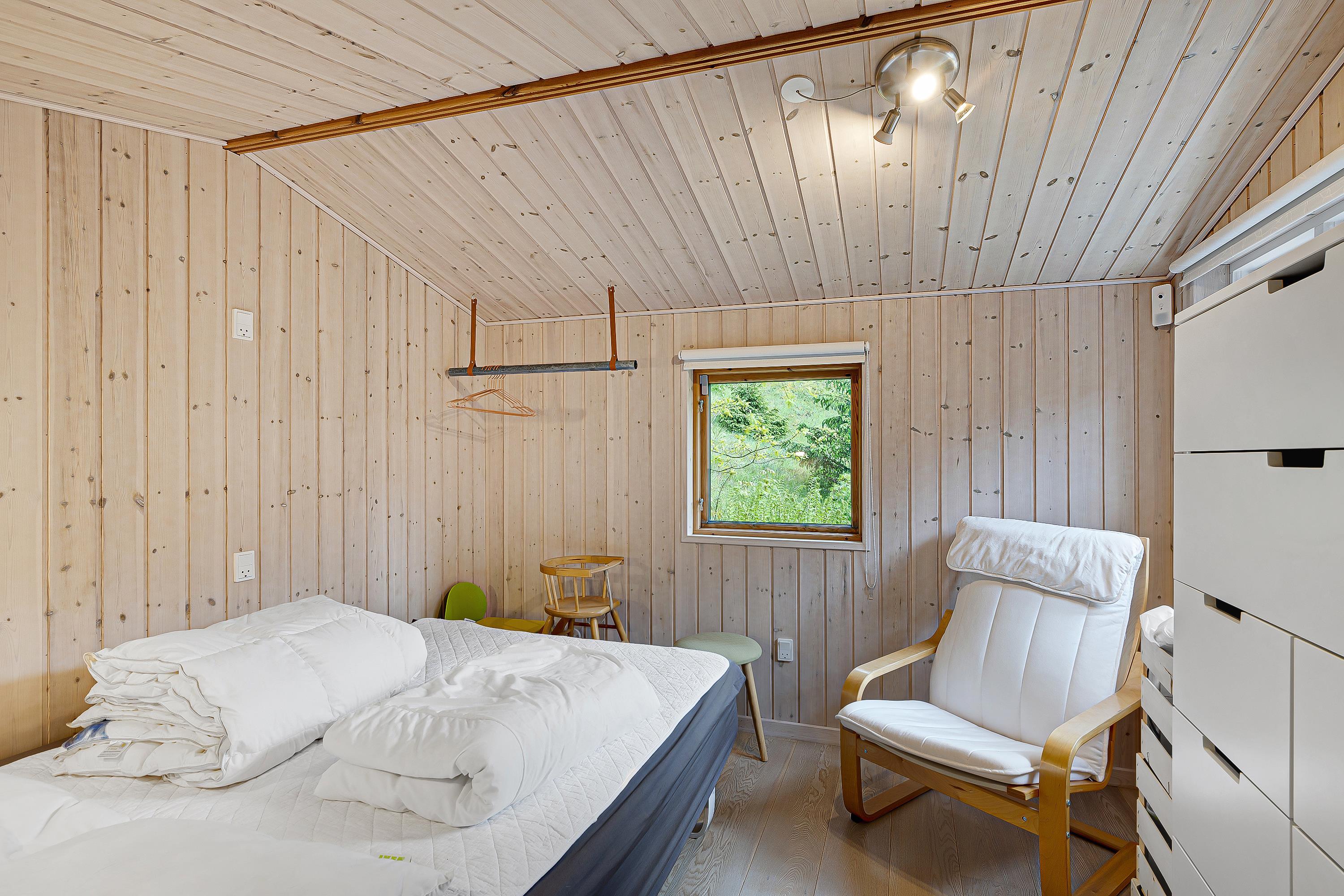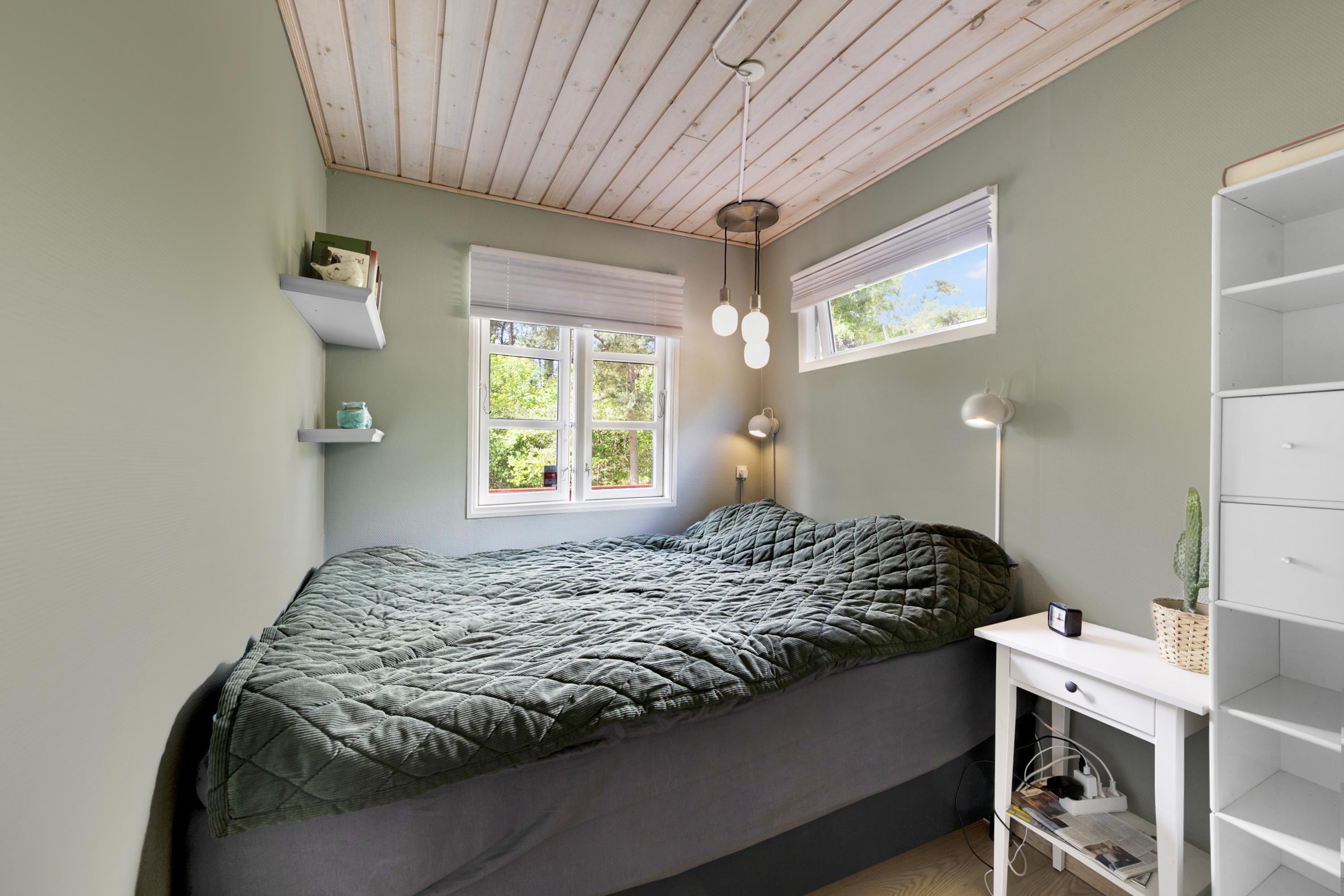Huset fremstår lyst og velindrettet med dejlig stue med brændeovn, spiseplads til 4 personer, bekvemt sofamøblement, fjernsyn med Cromecast samt radio. Det lyse og funktionelle køkken ligger i åben forbindelse med stuen og har keramiske kogeplader, ovn, køle-/fryseskab og mikrobølgeovn. Godt badeværelse med brusekabine og vaskemaskine. De 4 sovepladser fordeler sig på 2 rummelige, lyse soveværelse med dobbeltsenge. På grunden ligger endvidere et anneks, som ikke indgår i lejemålet. Der er internetadgang.