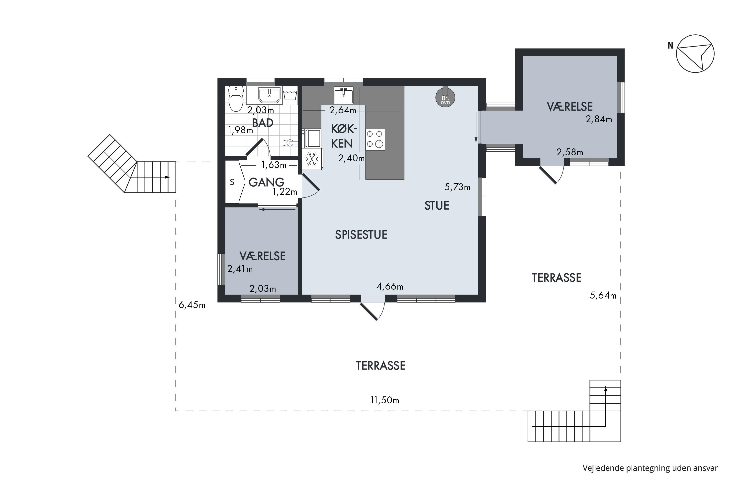 - Afstand indkøb 1 km